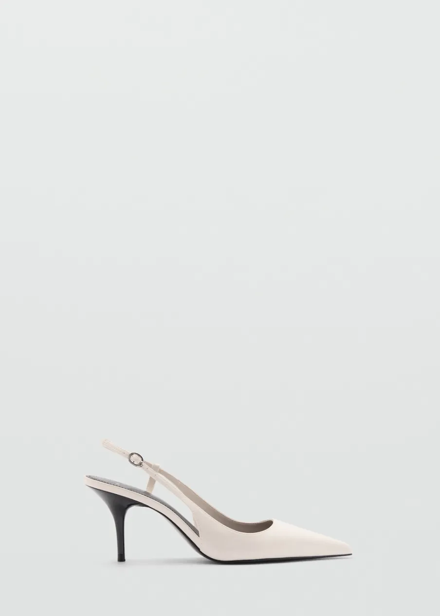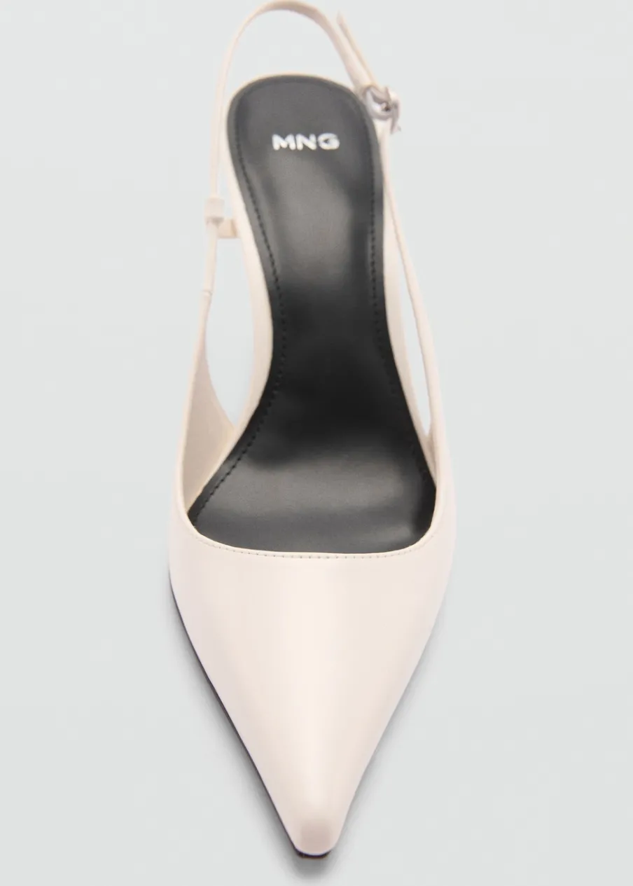 Fason z odkrytą piętą. Obcas szpilka. Spiczaste zakończenie. Zapięcie na klamrę. Obcas mierzy 7,5 cm. Wysoki obcas.