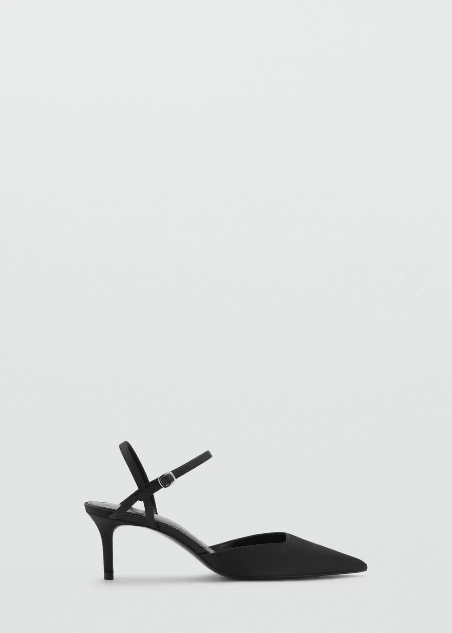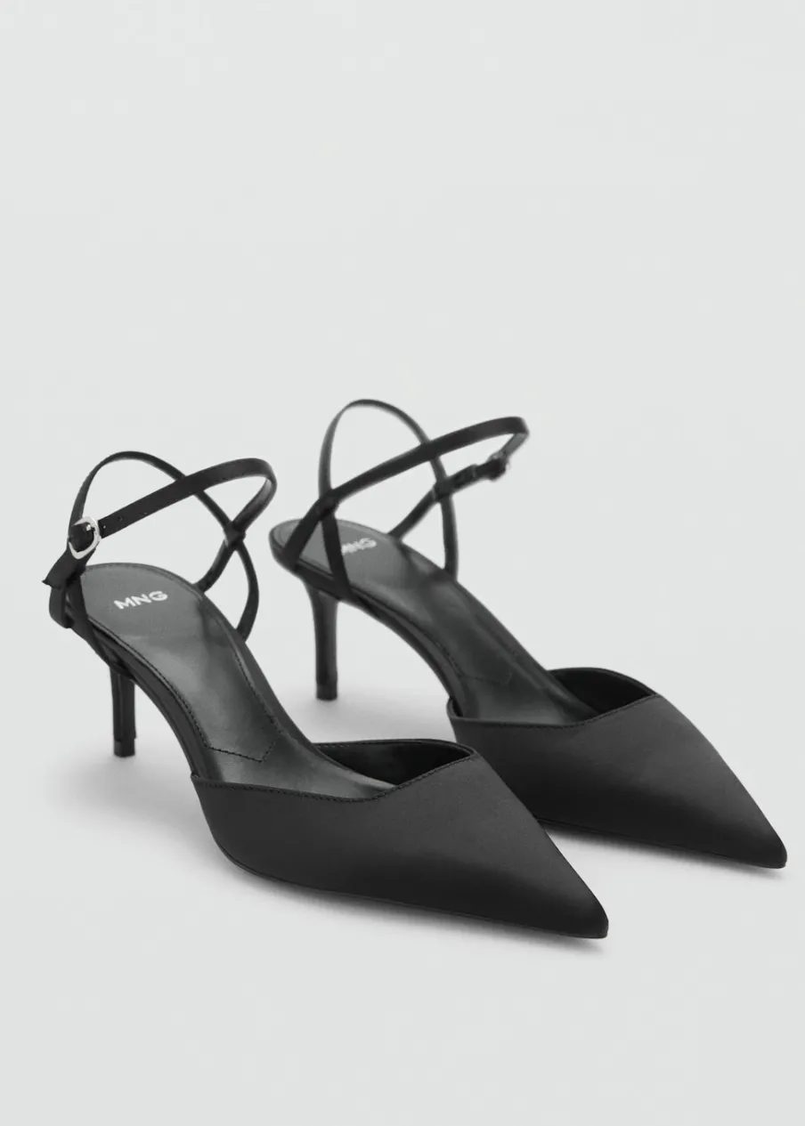 Model z paskami. Fason z odkrytą piętą. Spiczaste zakończenie. Obcas typu kitten. Obcas mierzy 7 cm. Zapięcie na klamrę.