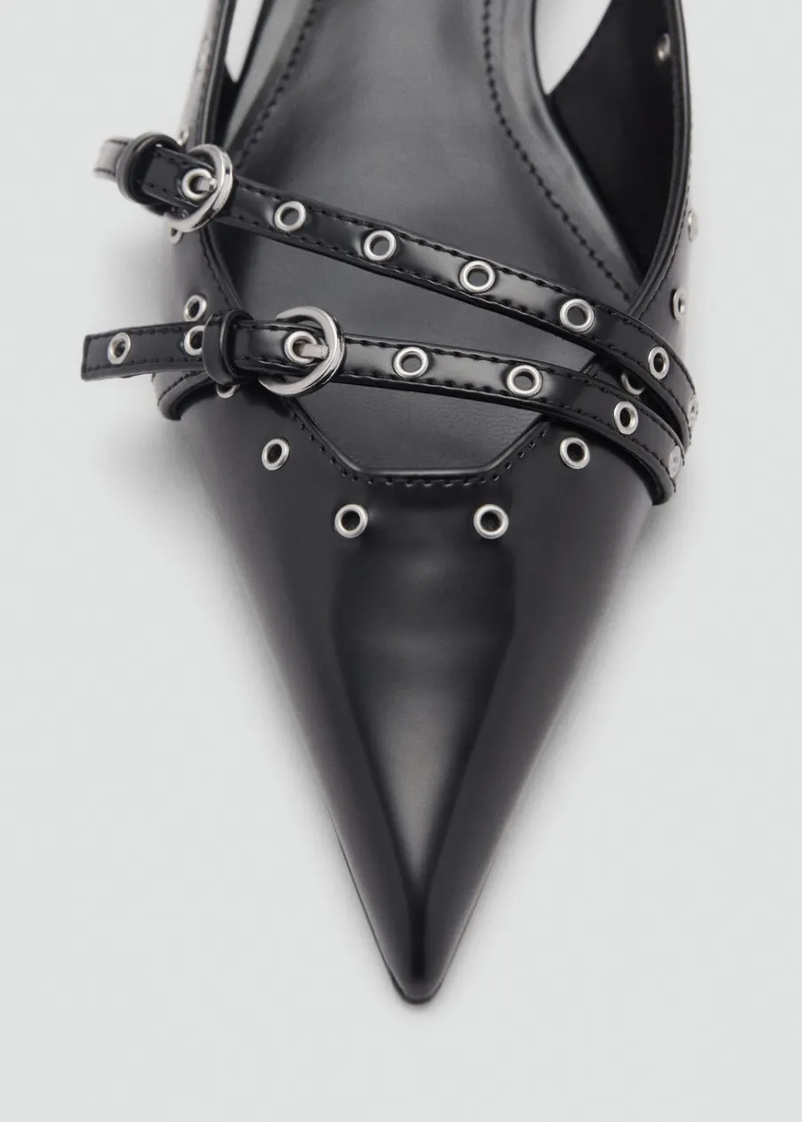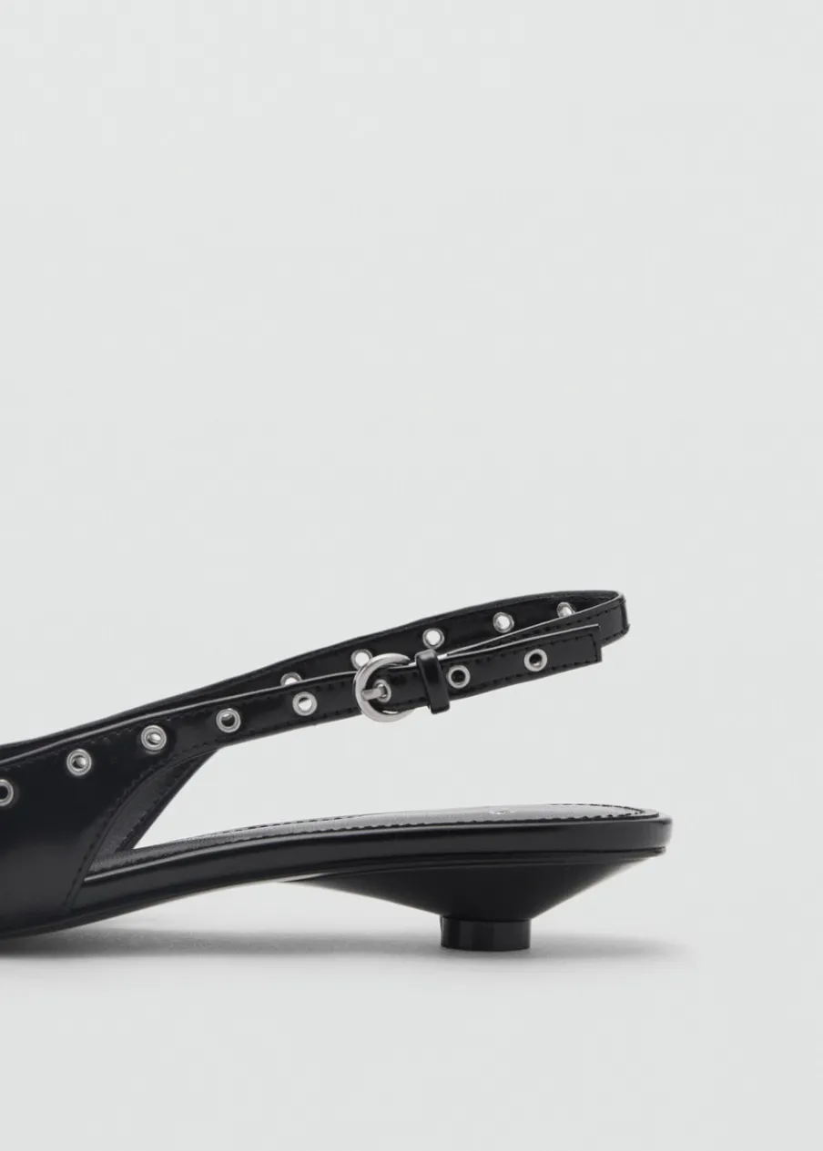 OpisObcas typu kitten. Dziurkowane detale. Spiczaste zakończenie. Zapięcie na klamrę. Wewnętrzna podszewka.