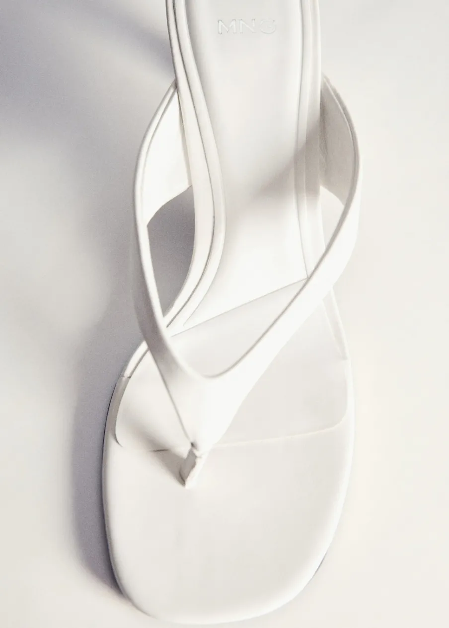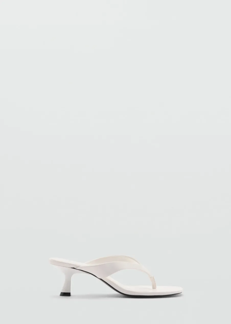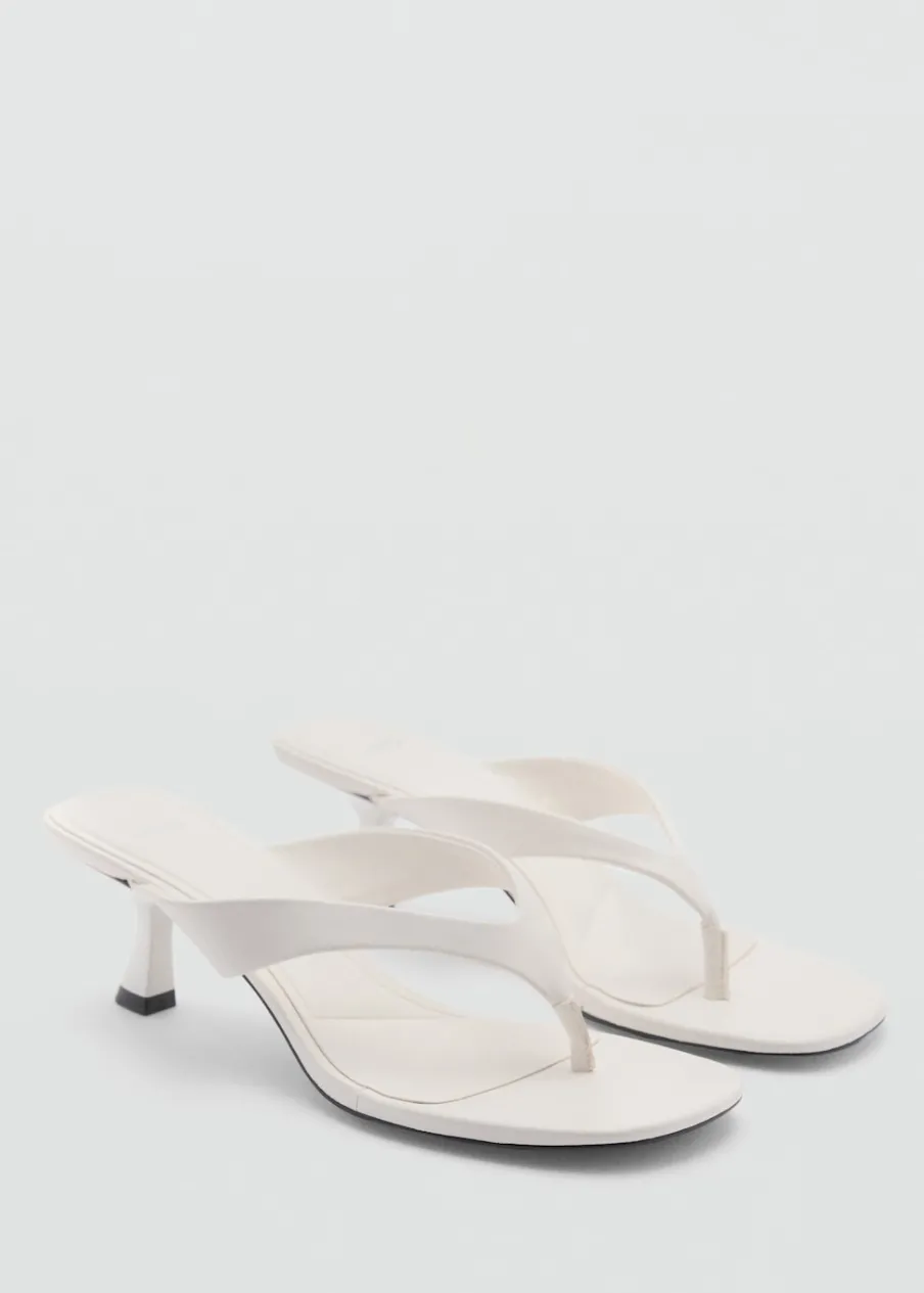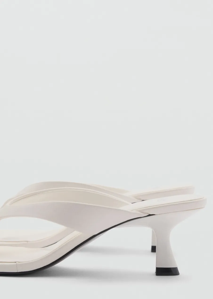 Fason z odkrytą piętą. Obcas typu kitten. Rozporek z przodu. Kwadratowy nosek. Obcas mierzy 5 cm. Model z paskiem między palcami.