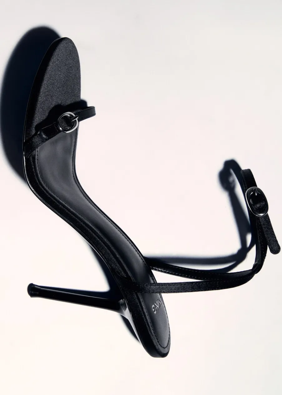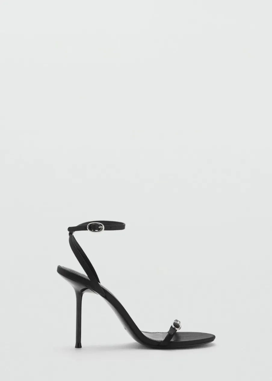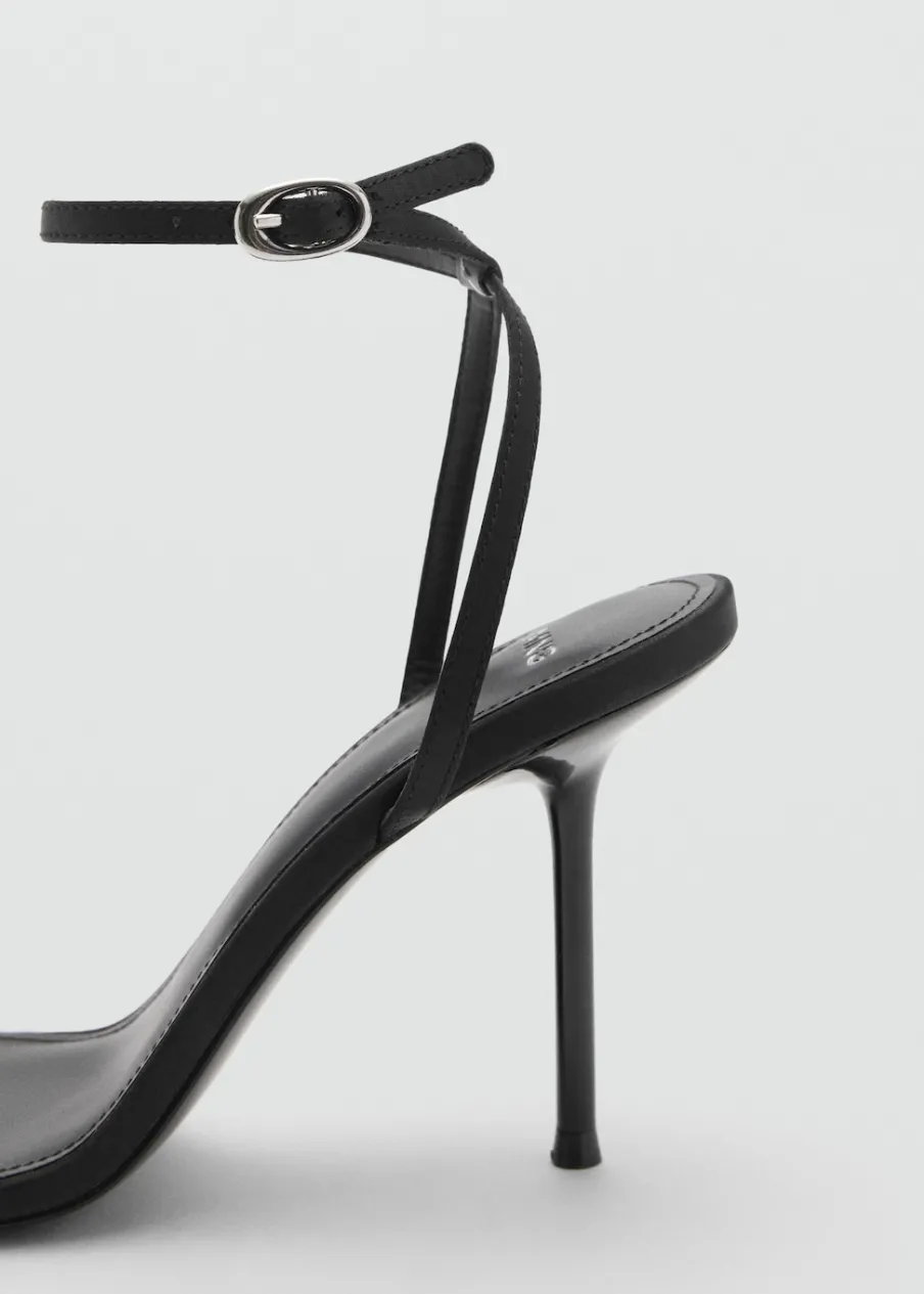 Obcas szpilka. Ozdobne klamry. Rozporek z przodu. Pasek wokół kostki. Obcas mierzy 9 cm. Kolekcja wizytowa. Wysoki obcas.