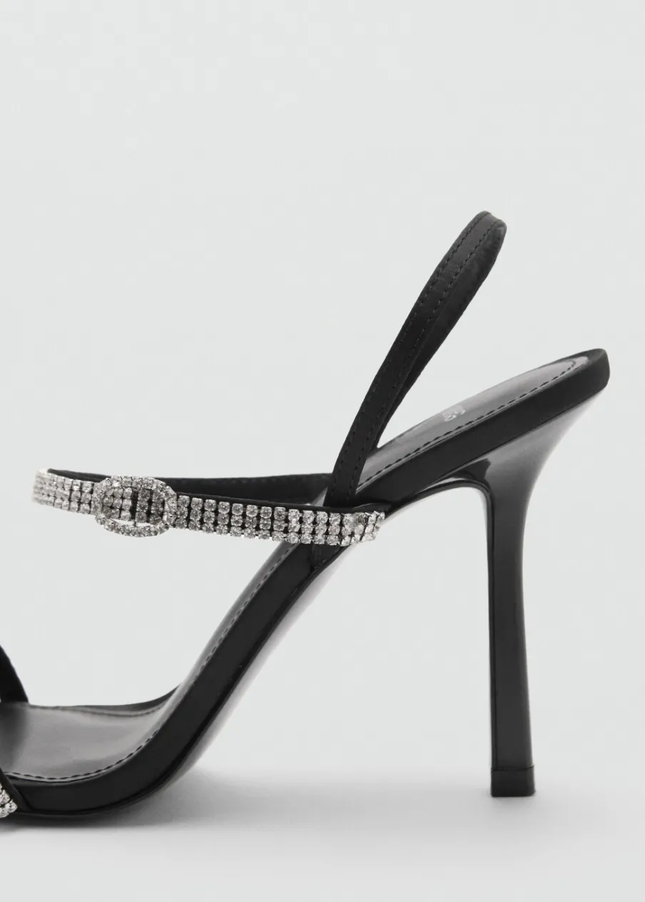 OpisModel z paskami. Rozporek z przodu. Kwadratowy nosek. Obcas mierzy 10 cm. Detal strass. Bez zapięcia.