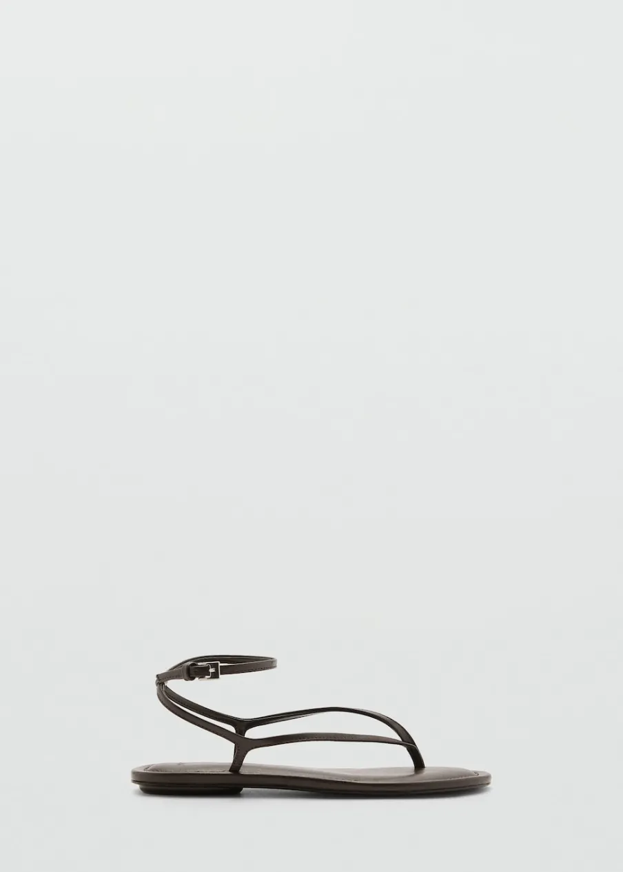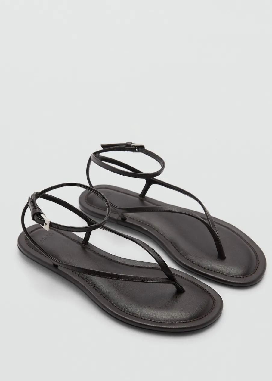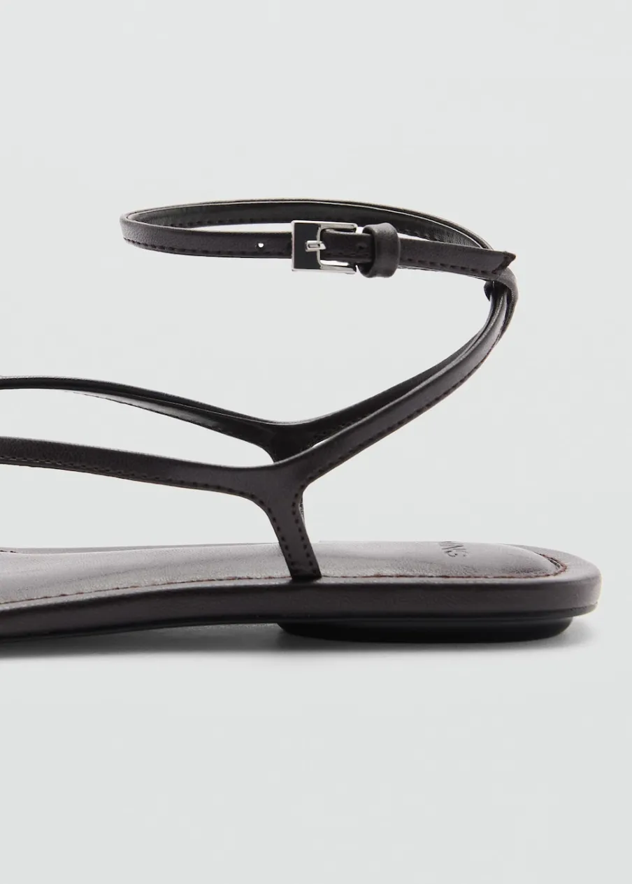 Model z paskami. Rozporek z przodu. Płaska podeszwa. Zapięcie na klamrę. Model z paskiem między palcami.