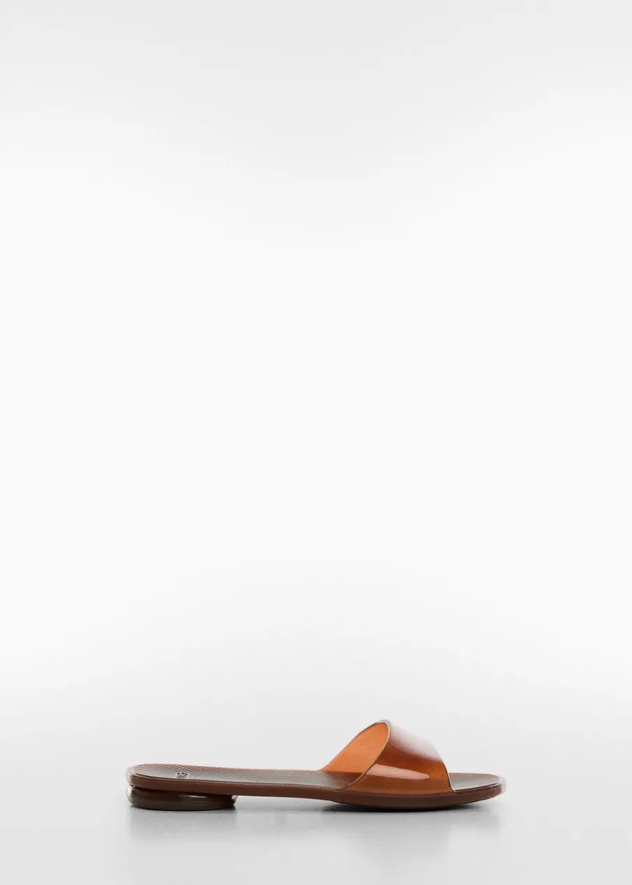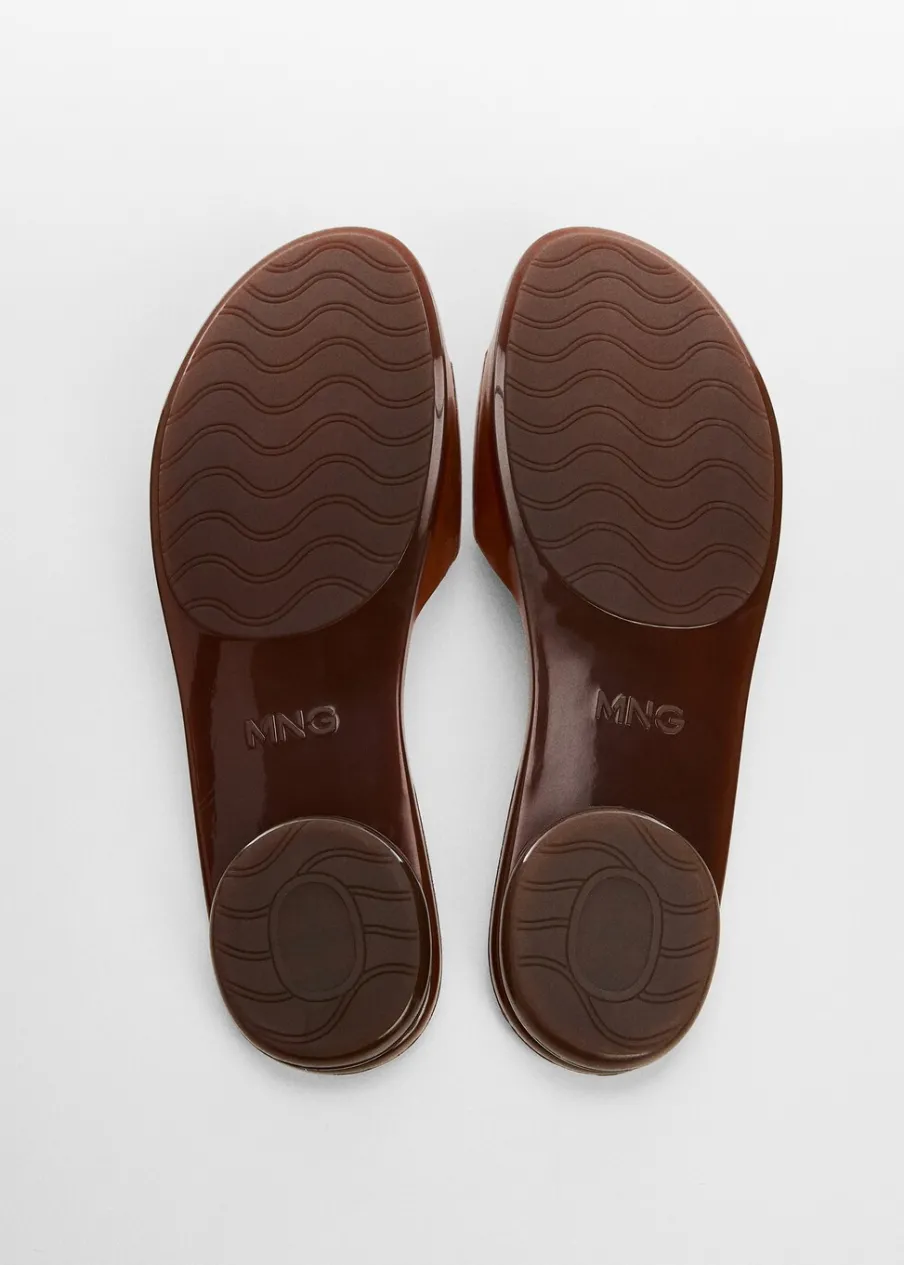 Płaska podeszwa. Model z paskami. Rozporek z przodu. Okrągły nosek. Bez pięt.