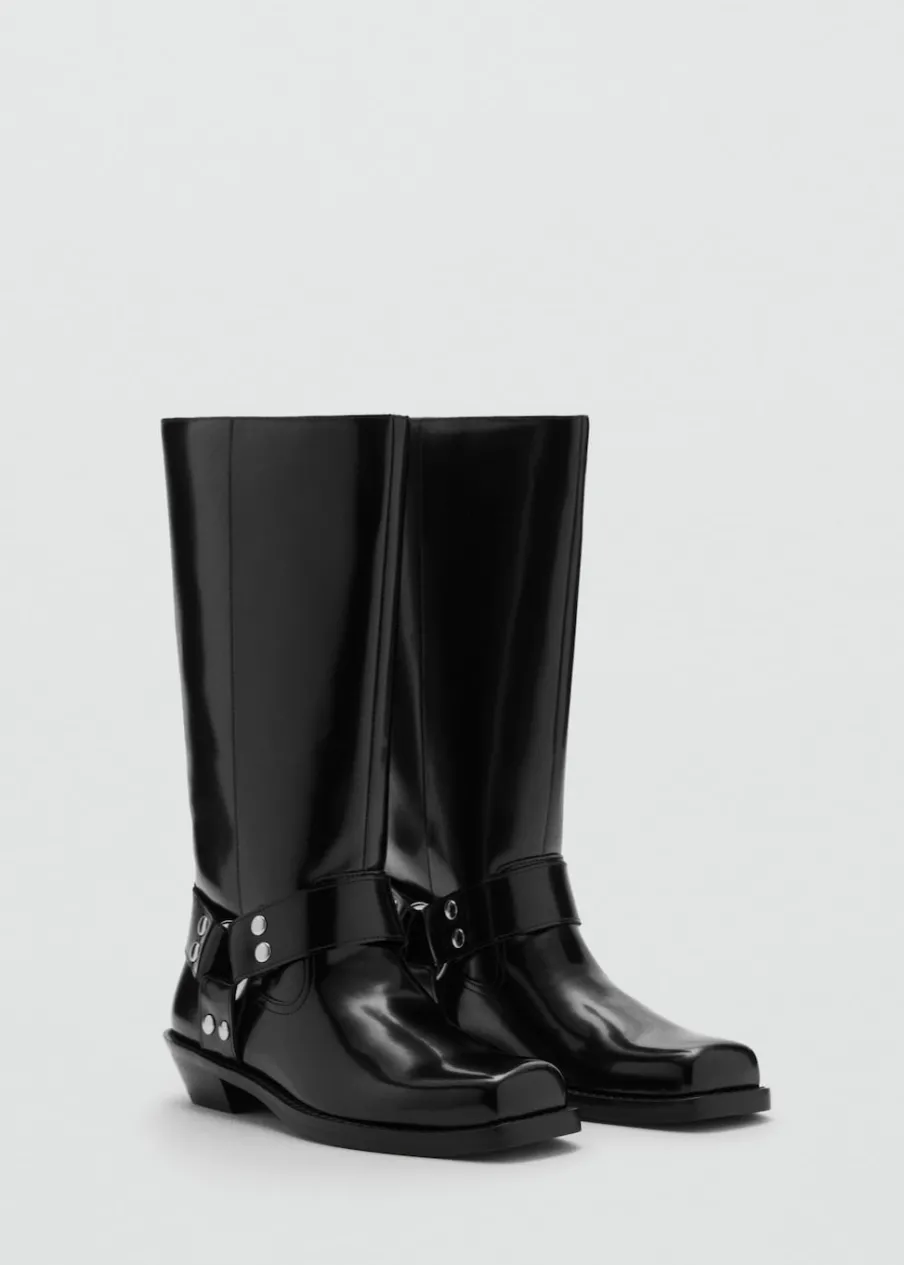 Kwadratowy nosek. Metalowe elementy. Bez zapięcia.