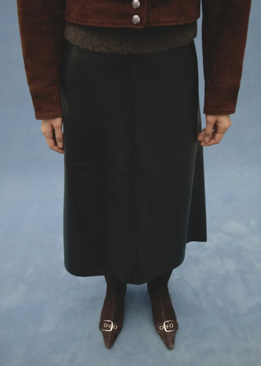 OpisSkóra kozia. Dwoina skórzana. Obcas typu kitten. Spiczaste zakończenie. Obcas mierzy 4 cm. Zapięcie na zamek z b…