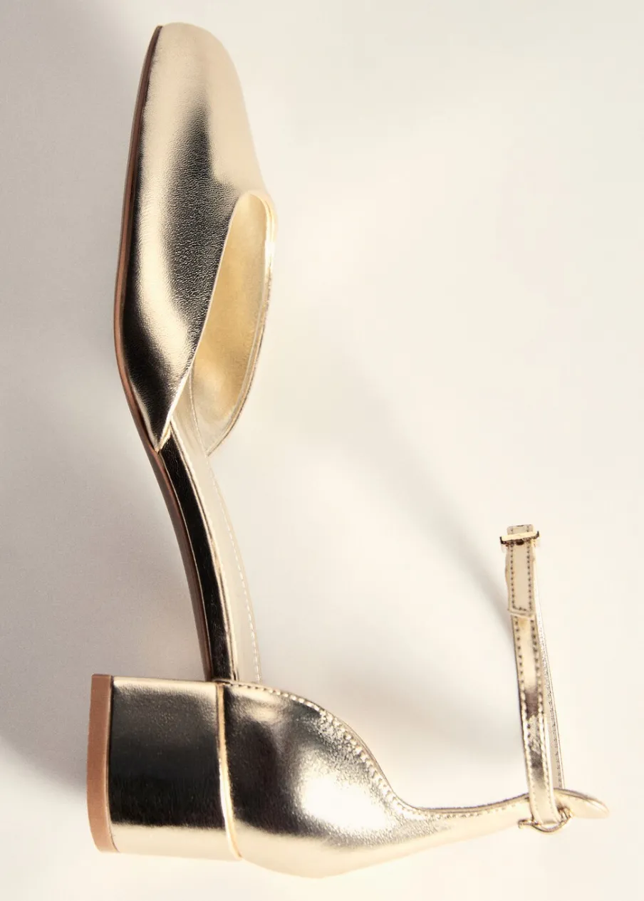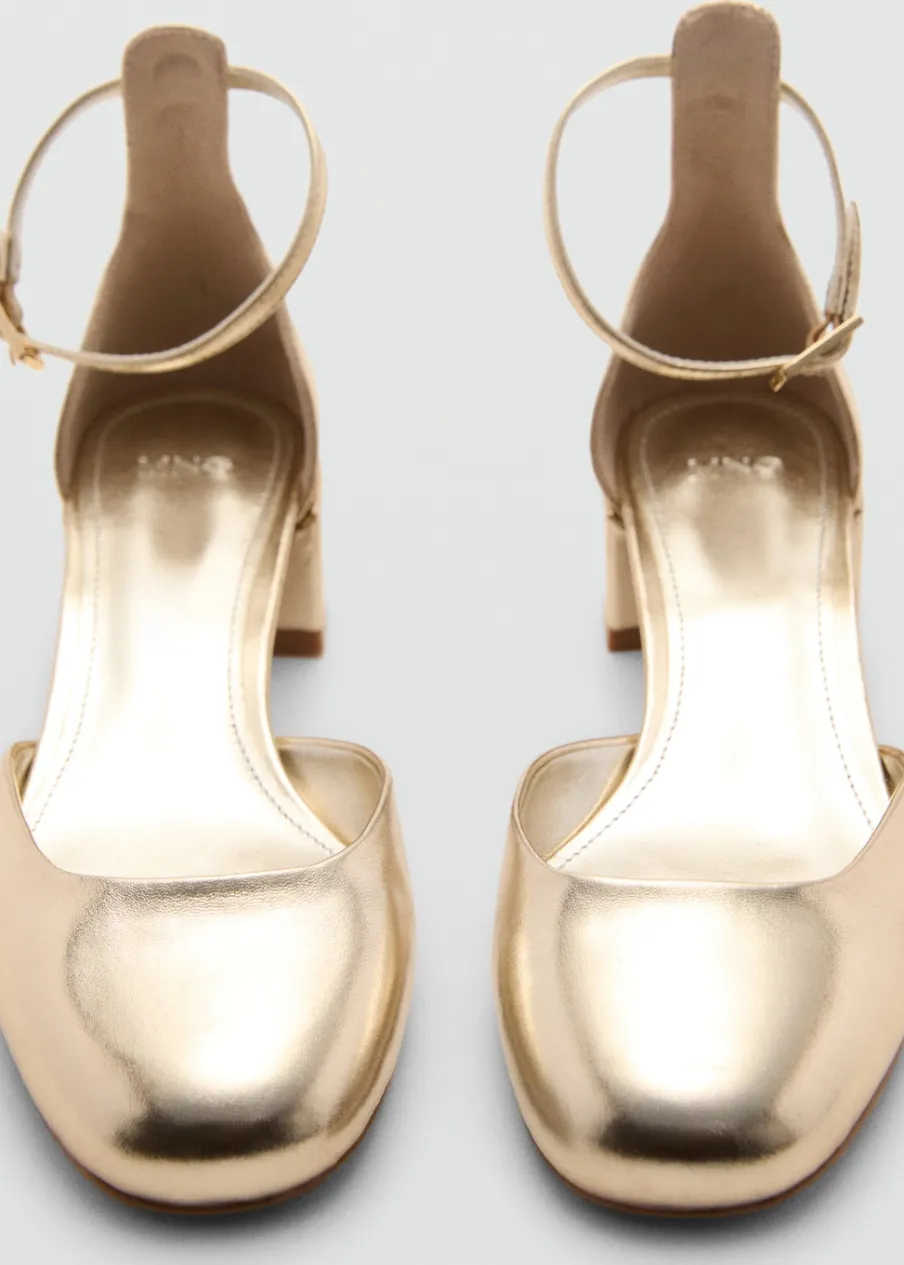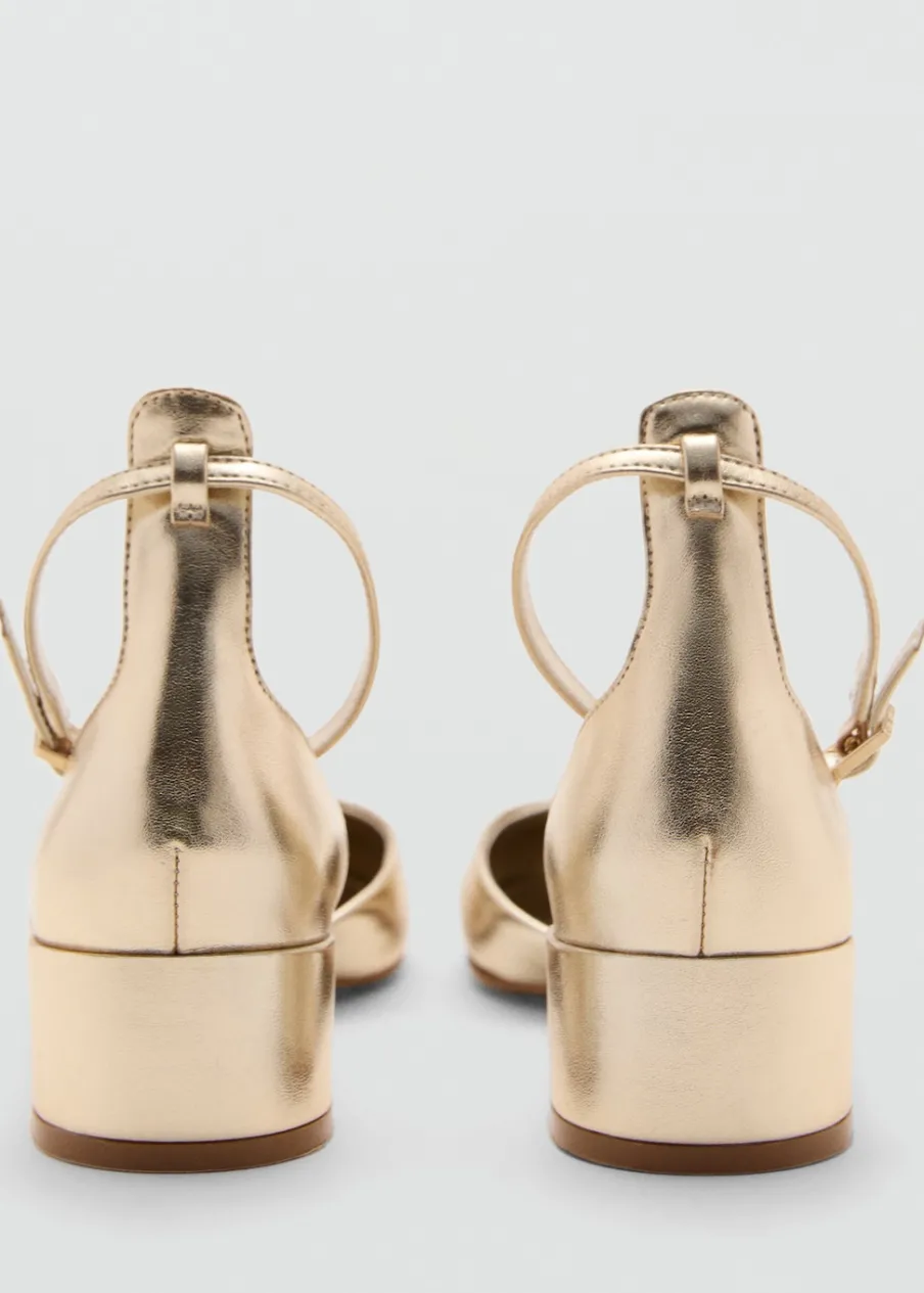 OpisImitacja lakierowanej skóry. Okrągły nosek. Obcas klockowy. Zapięcie na pasek ze sprzączką. Obcas mierzy 4 cm.