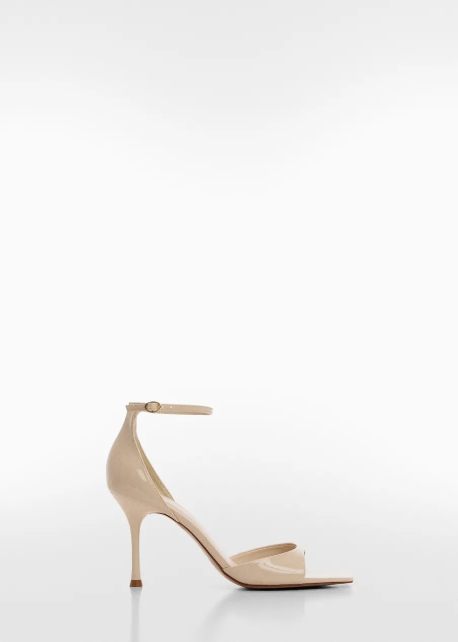 Imitacja lakierowanej skóry. Obcas szpilka. Rozporek z przodu. Kwadratowy nosek. Pasek wokół kostki. Obcas mierzy 9 cm. Zapięcie na klamrę.