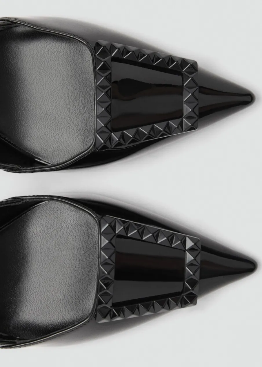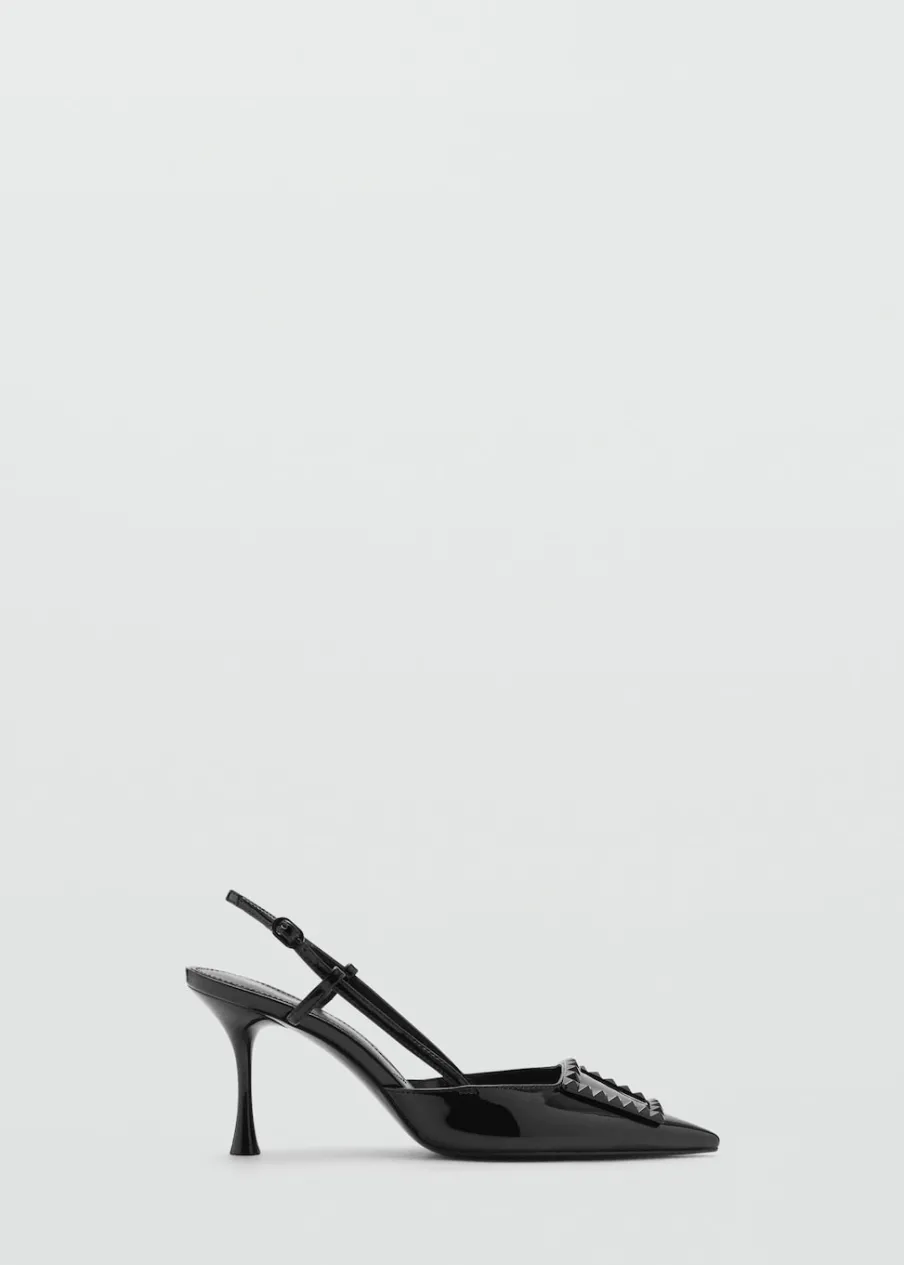 Imitacja lakierowanej skóry. Obcas szpilka. Spiczaste zakończenie. Obcas mierzy 8 cm. Kolor szary dostępny tylko online. Wysoki obcas.