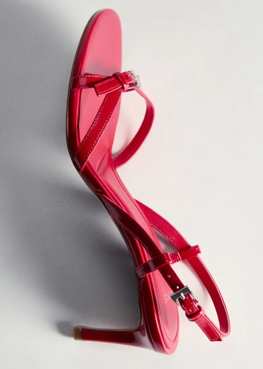 Model z paskami. Obcas szpilka. Rozporek z przodu. Obcas mierzy 7,5 cm. Zapięcie na klamrę. Ozdobna klamra.