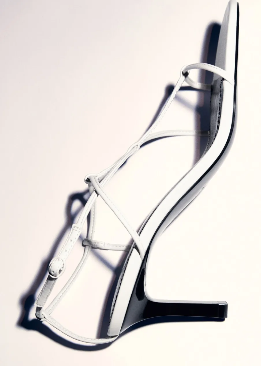 Model ze skrzyżowanym paskiem. Rozporek z przodu. Obcas szpilka. Obcas mierzy 7 cm. Zapięcie na klamrę. Ozdobny węzeł.