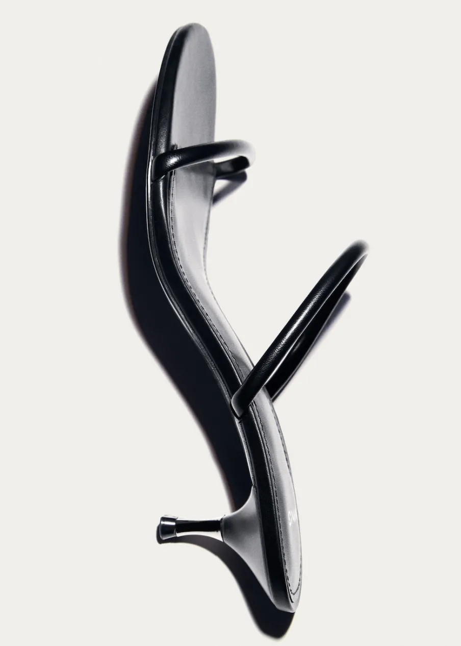 Model z paskami. Fason z odkrytą piętą. Obcas typu kitten. Kwadratowy nosek. Bez zapięcia. Obcas mierzy 4 cm. Wyłącznie online.