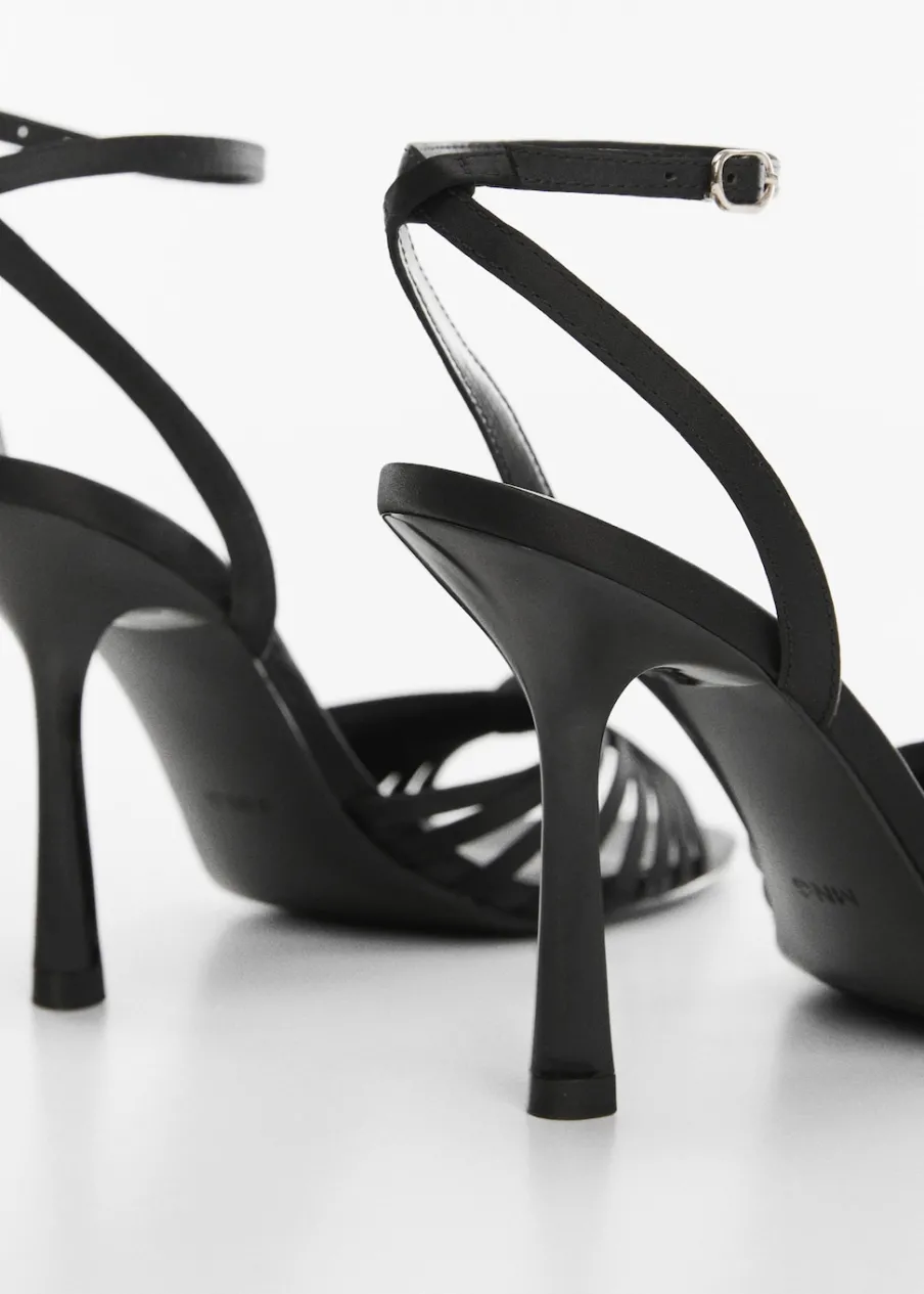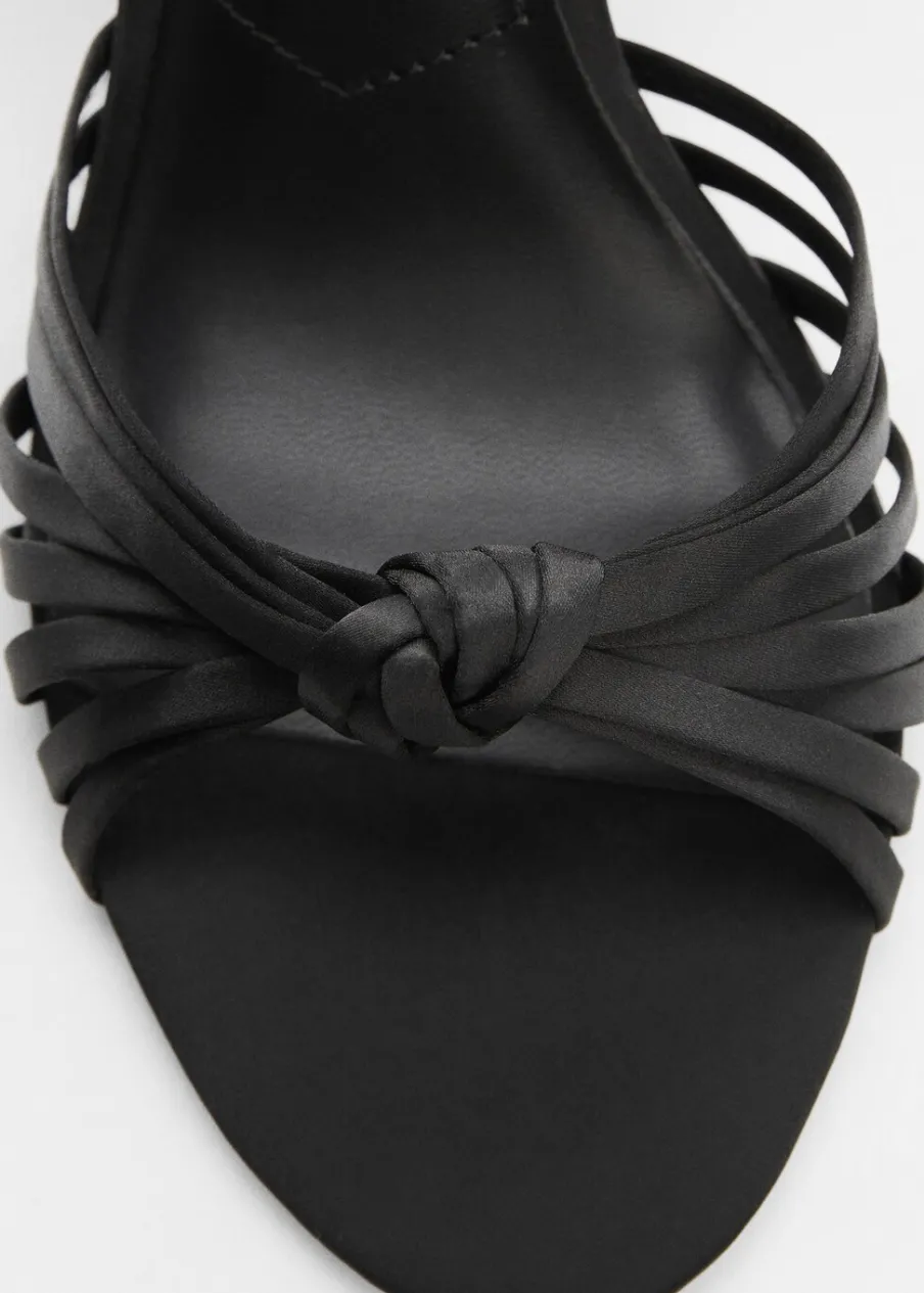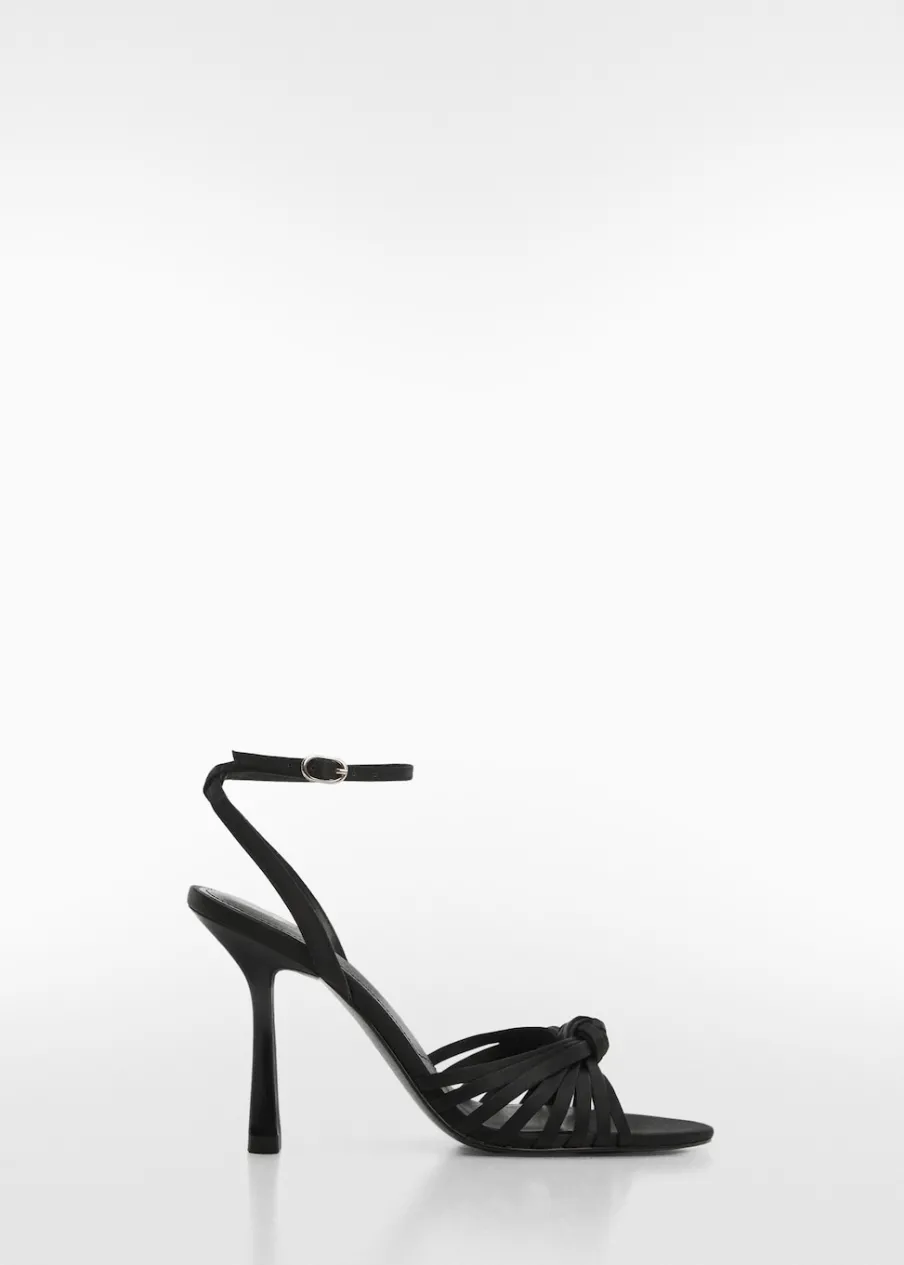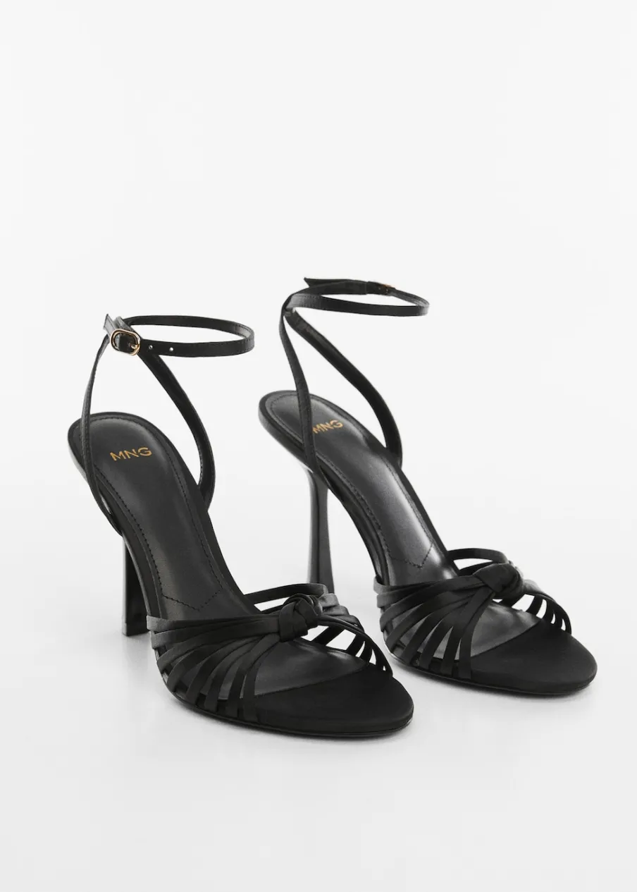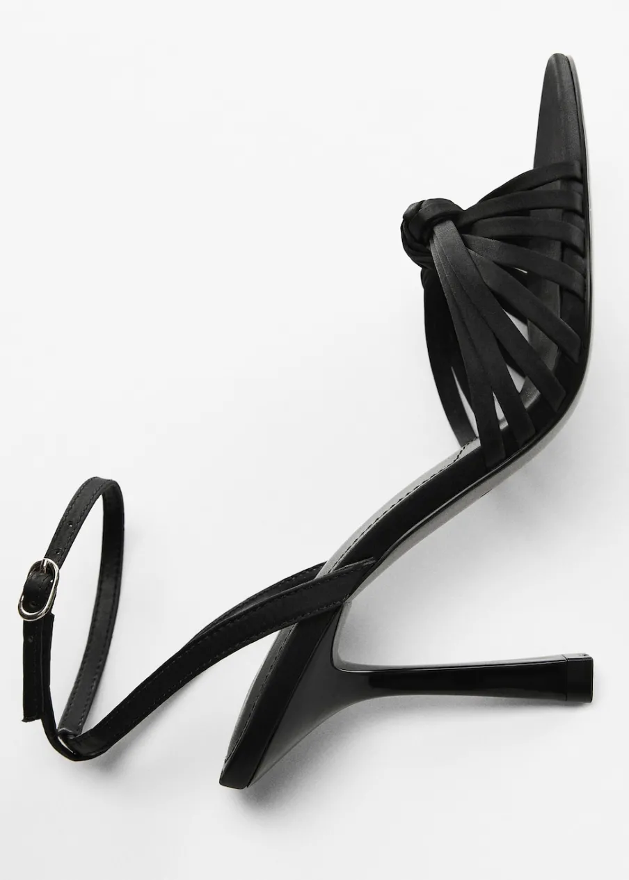 Model z paskami. Obcas lejkowy. Okrągły nosek. Pasek wokół kostki. Zapięcie na klamrę. Ozdobny węzeł. Obcas mierzy 9 cm. Kolekcja wizytowa.