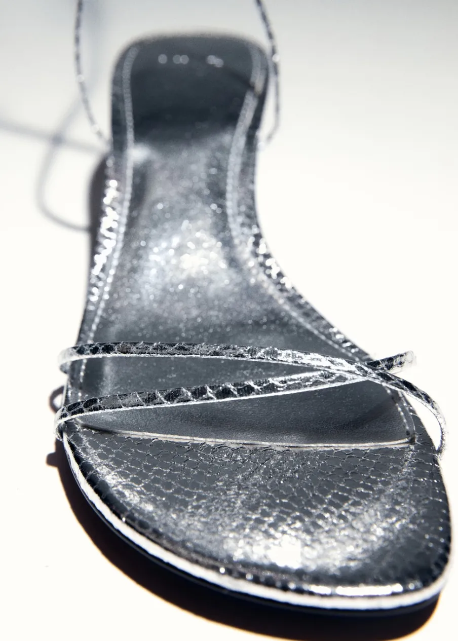 Metaliczne wykończenie. Model z paskami. Obcas typu kitten. Rozporek z przodu. Wstawki w lamparcie cętki. Obcas mierzy 4 cm.