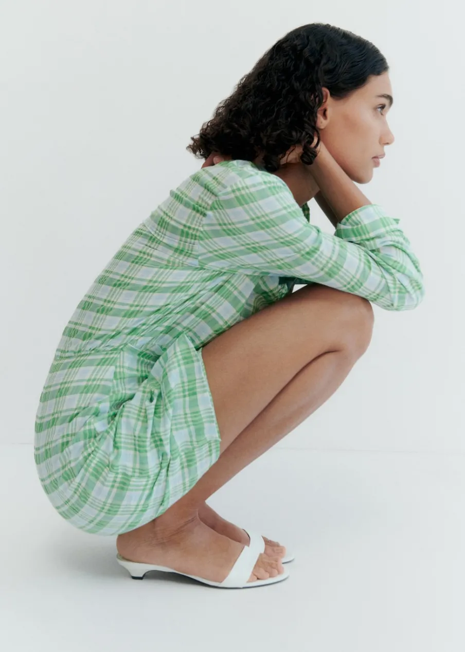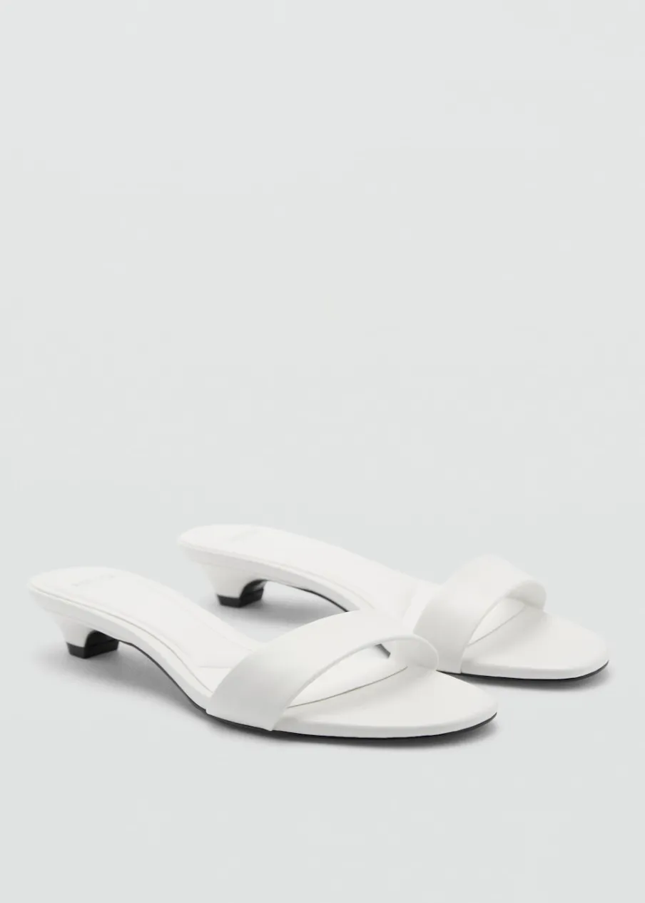 Fason z odkrytą piętą. Model z paskami. Rozporek z przodu. Kwadratowy nosek. Obcas typu kitten. Bez zapięcia. Wysokość obcasa 3 cm.