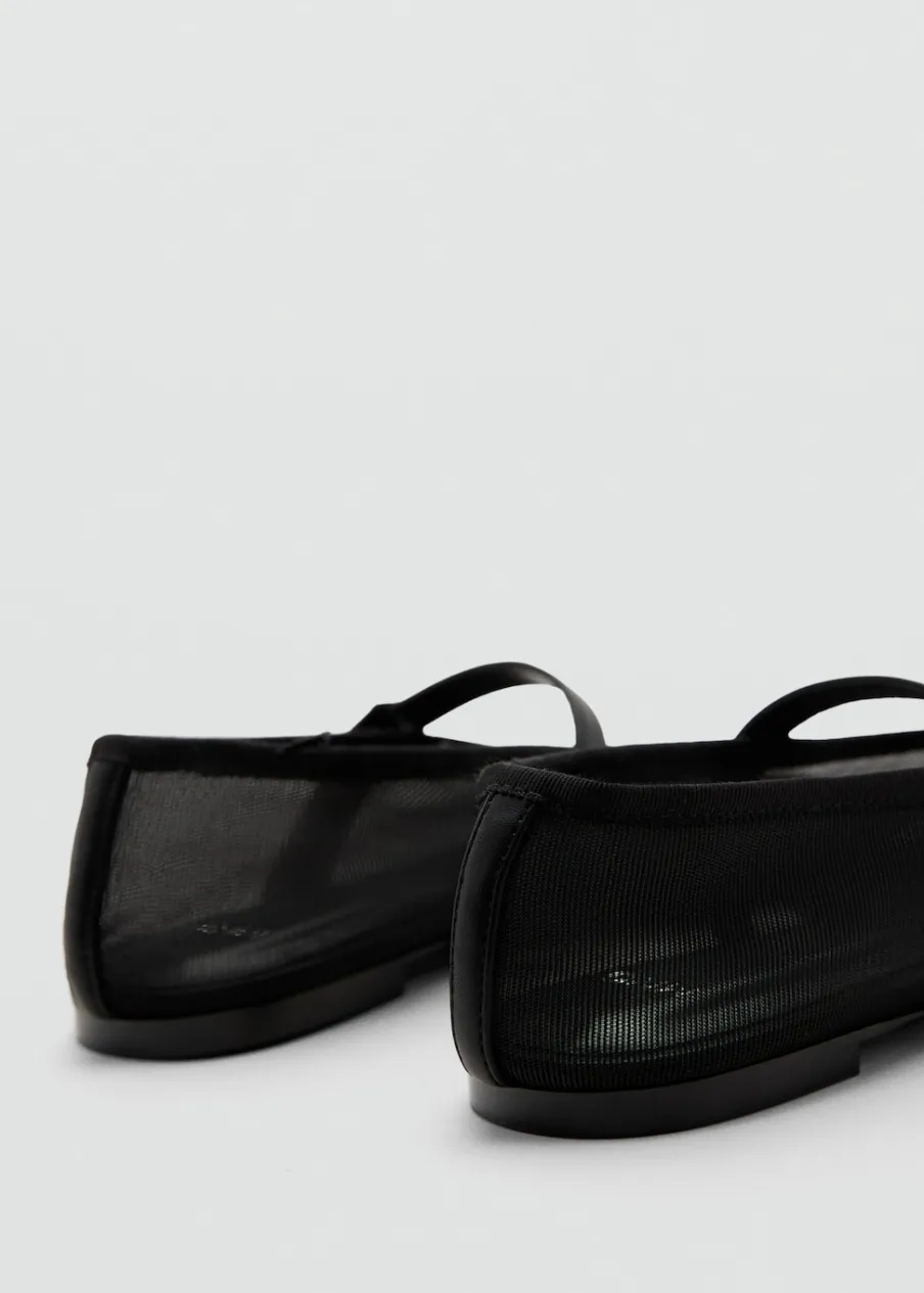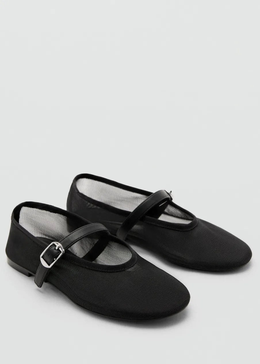 Siateczkowa tkanina. Płaska podeszwa. Ozdobna tasiemka. Zapięcie na klamrę. Okrągły nosek. Sezon festiwalowy. Kolekcja Selection.
