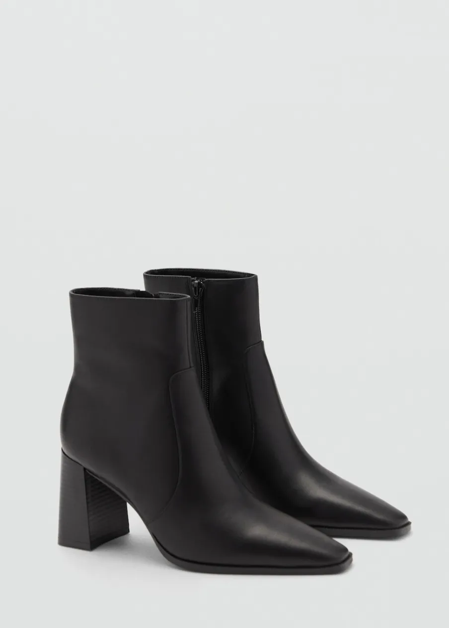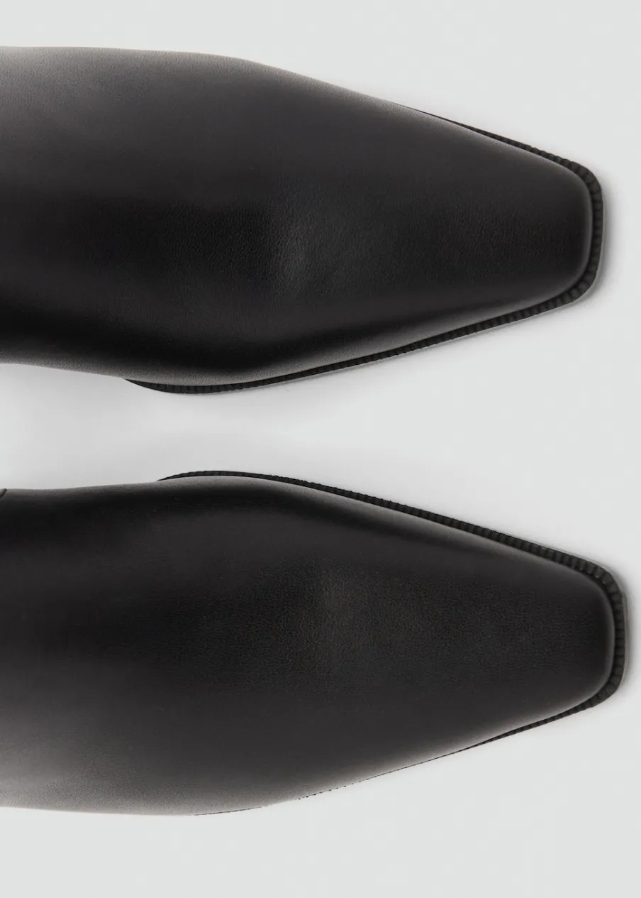 Skóra bydlęca. Obcas klockowy. Kwadratowy nosek. Obcas mierzy 7 cm. Boczne zapięcie na suwak. Wewnętrzna podszewka.