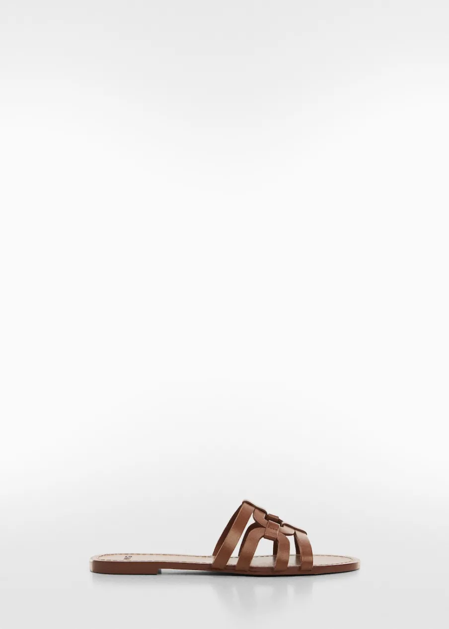 Opis100% skóra bydlęca. Model z paskami. Okrągły nosek. Płaska podeszwa.