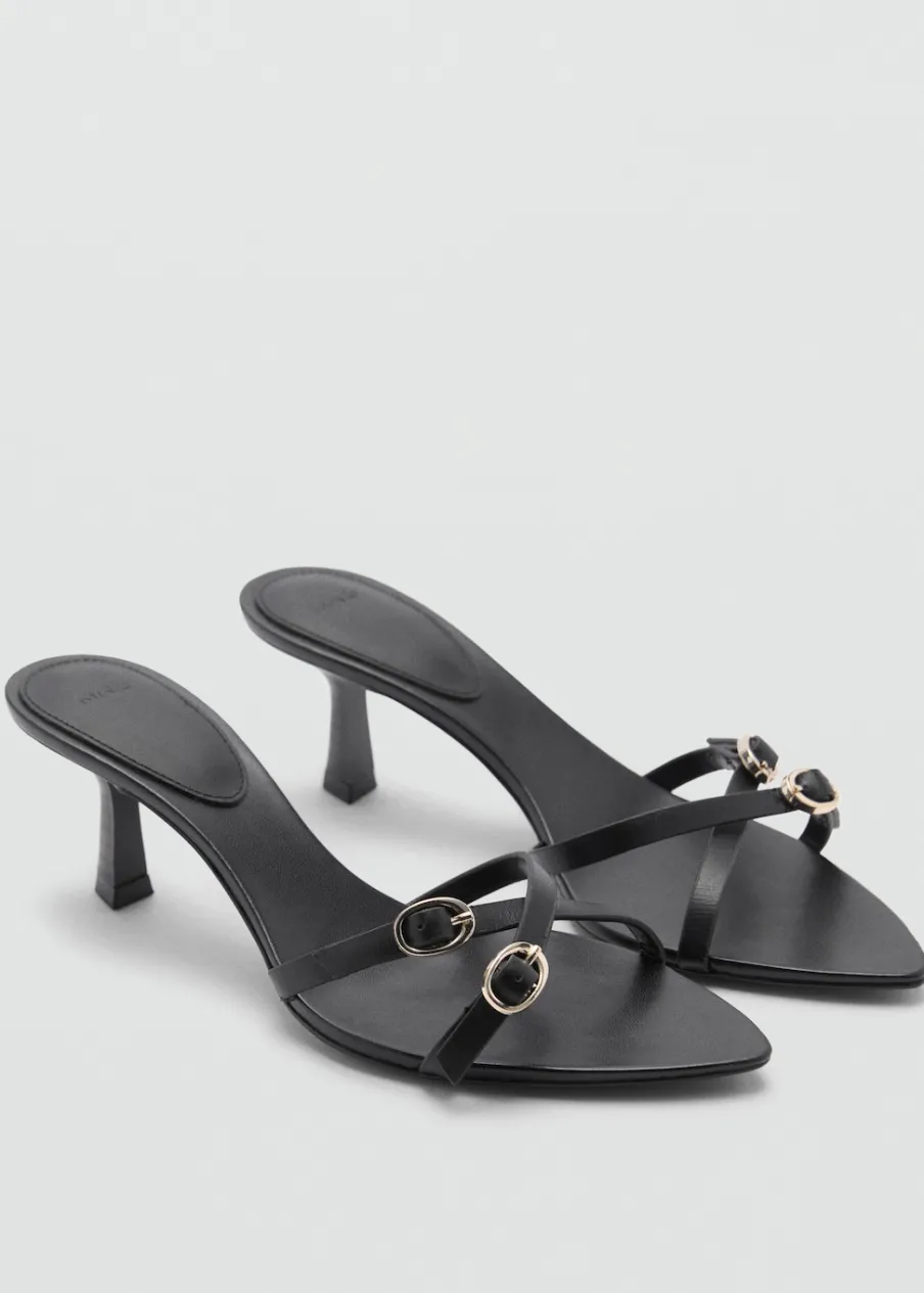 Model z paskami. Bez pięt. Rozporek z przodu. Obcas typu kitten. Ozdobne klamry. Skóra bydlęca.