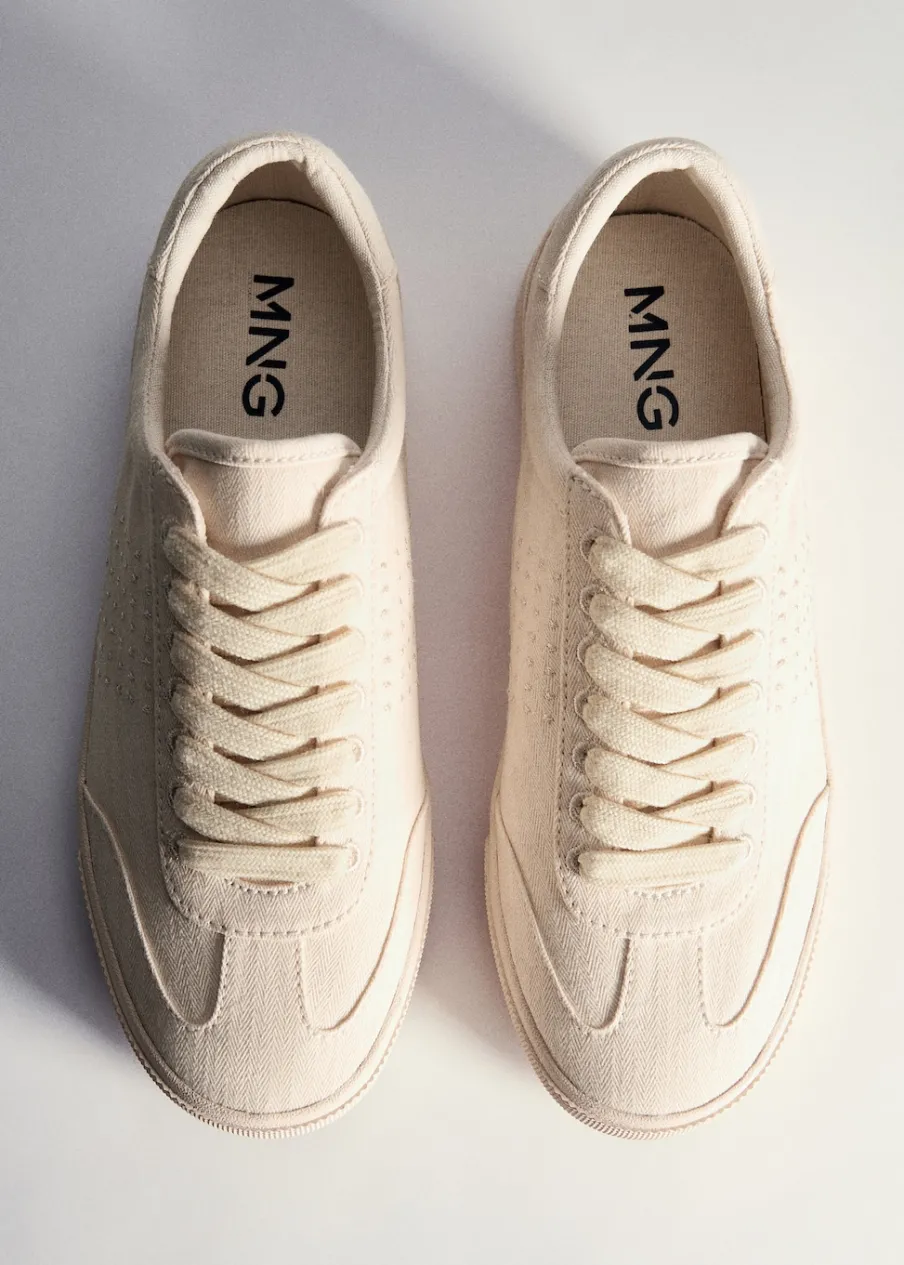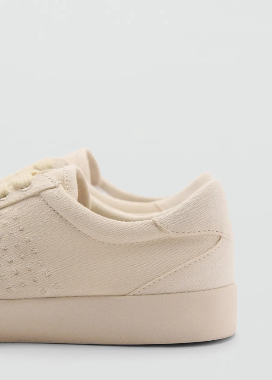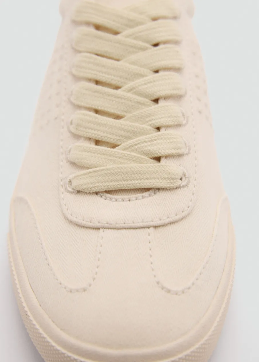 Opis100% bomull. Okrągły nosek. Płaska podeszwa. Wiązanie na sznurówki.