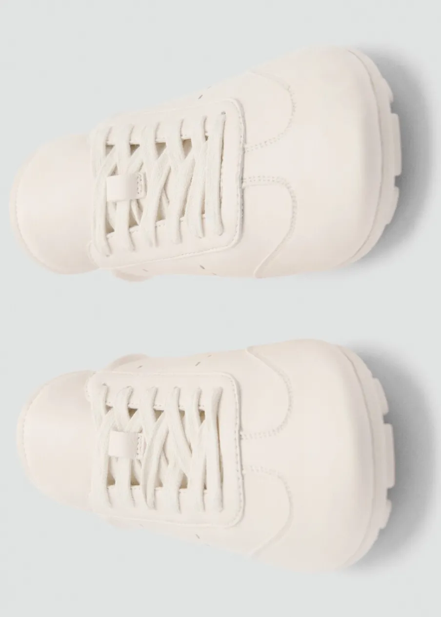 OpisOkrągły nosek. Płaska podeszwa. Wiązanie na sznurówki.