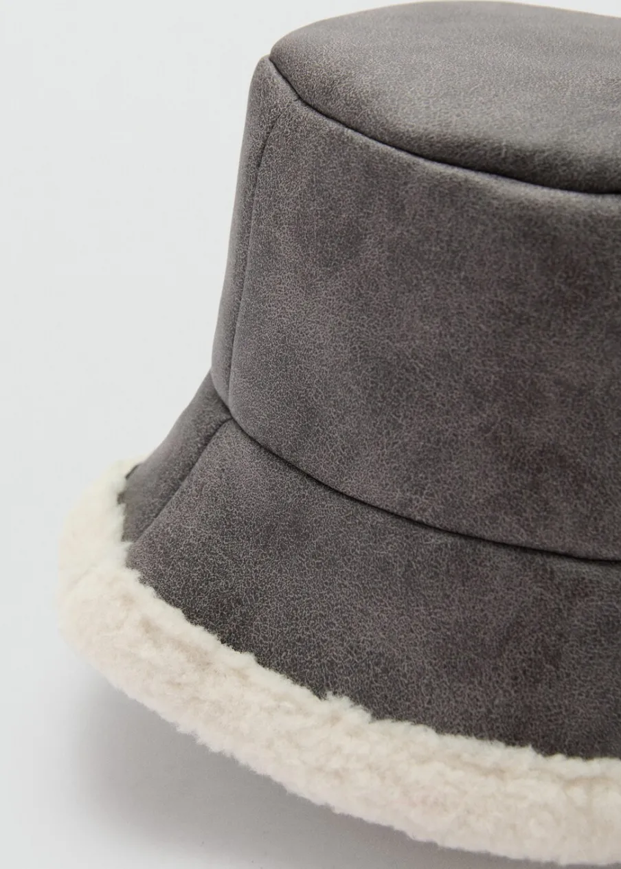 OpisEfekt skóry. Fason bucket hat. Materiał typu baranek.