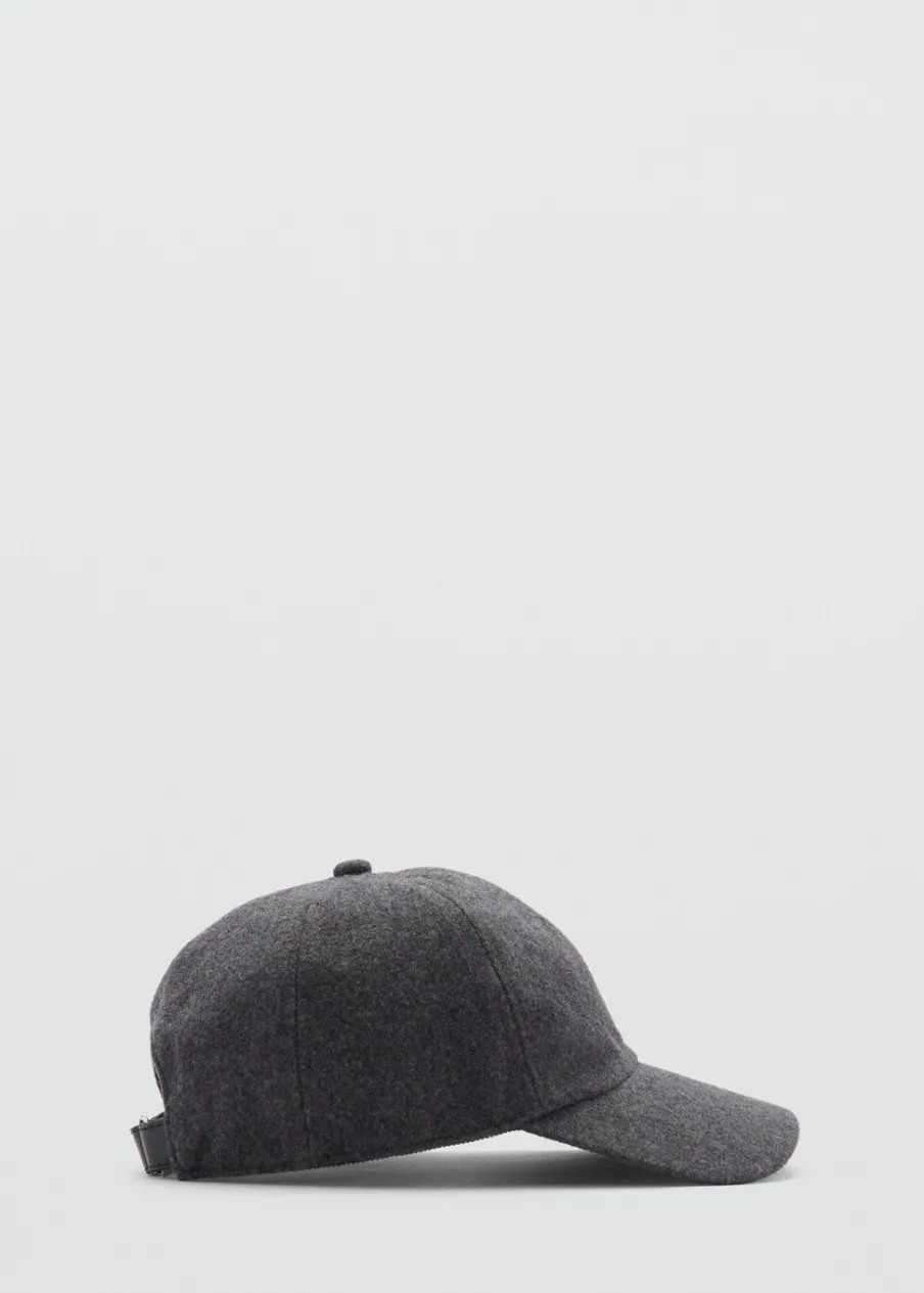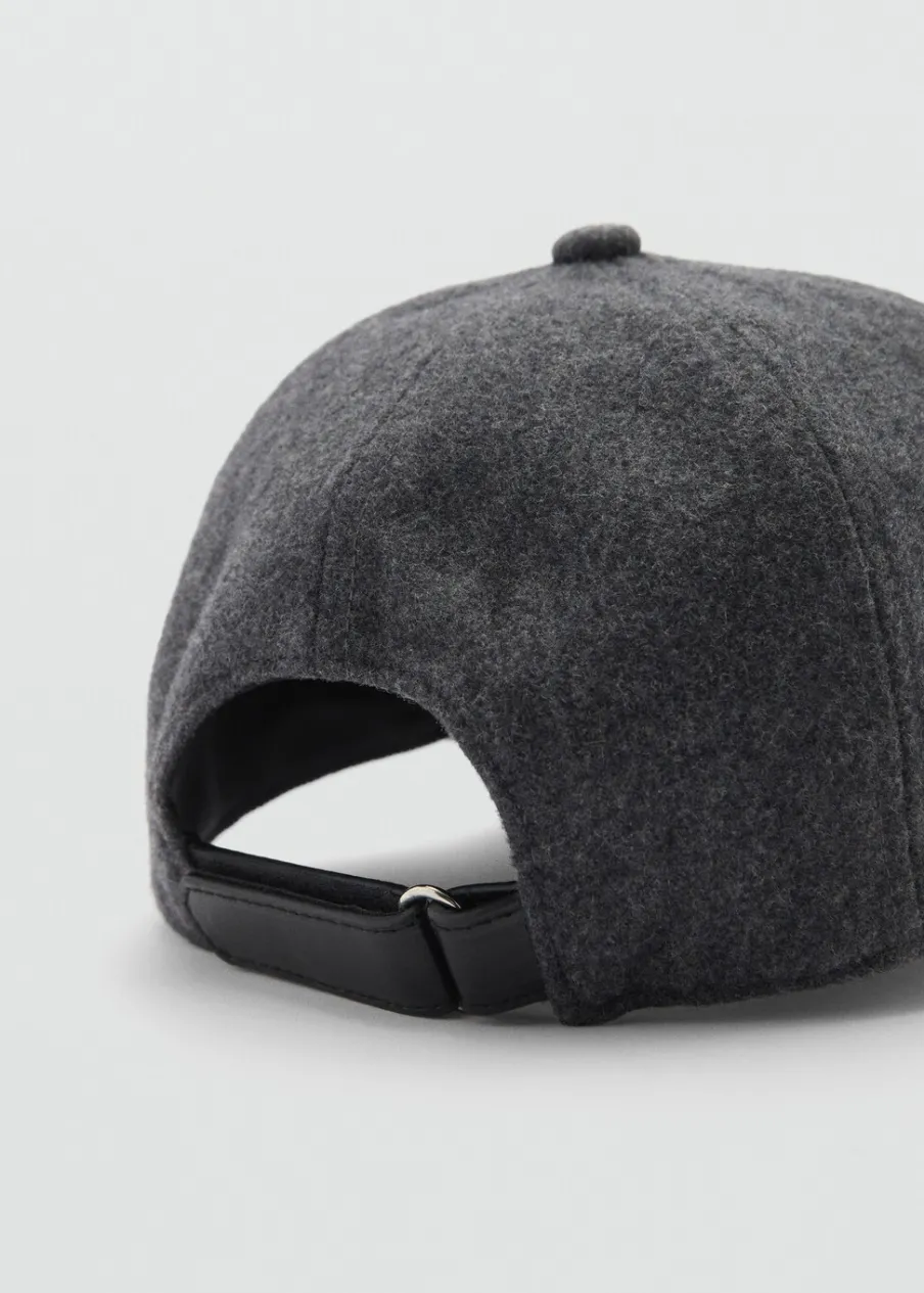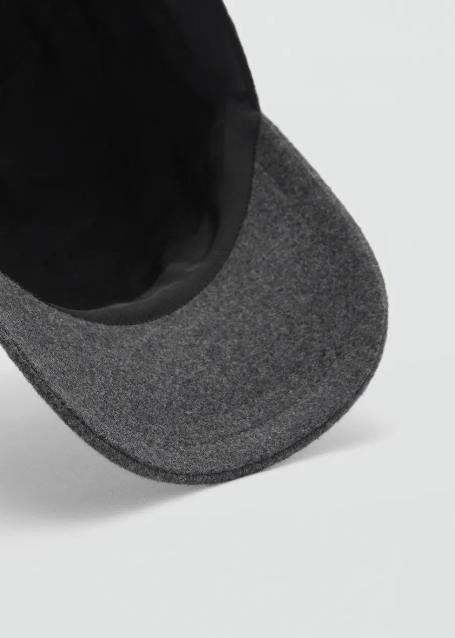 Wełniana tkanina. Z daszkiem. Bawełniana podszewka. Regulacja na rzepy z tyłu.