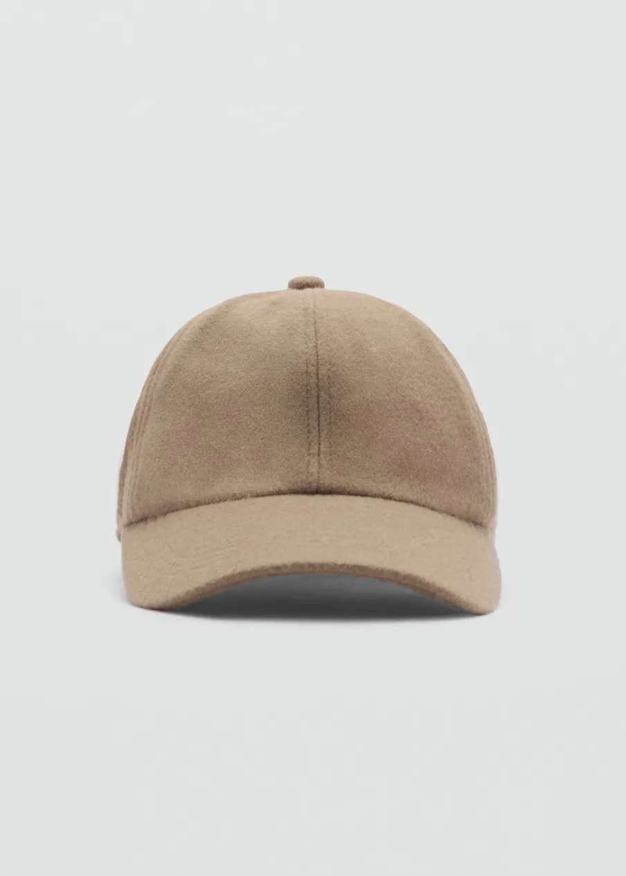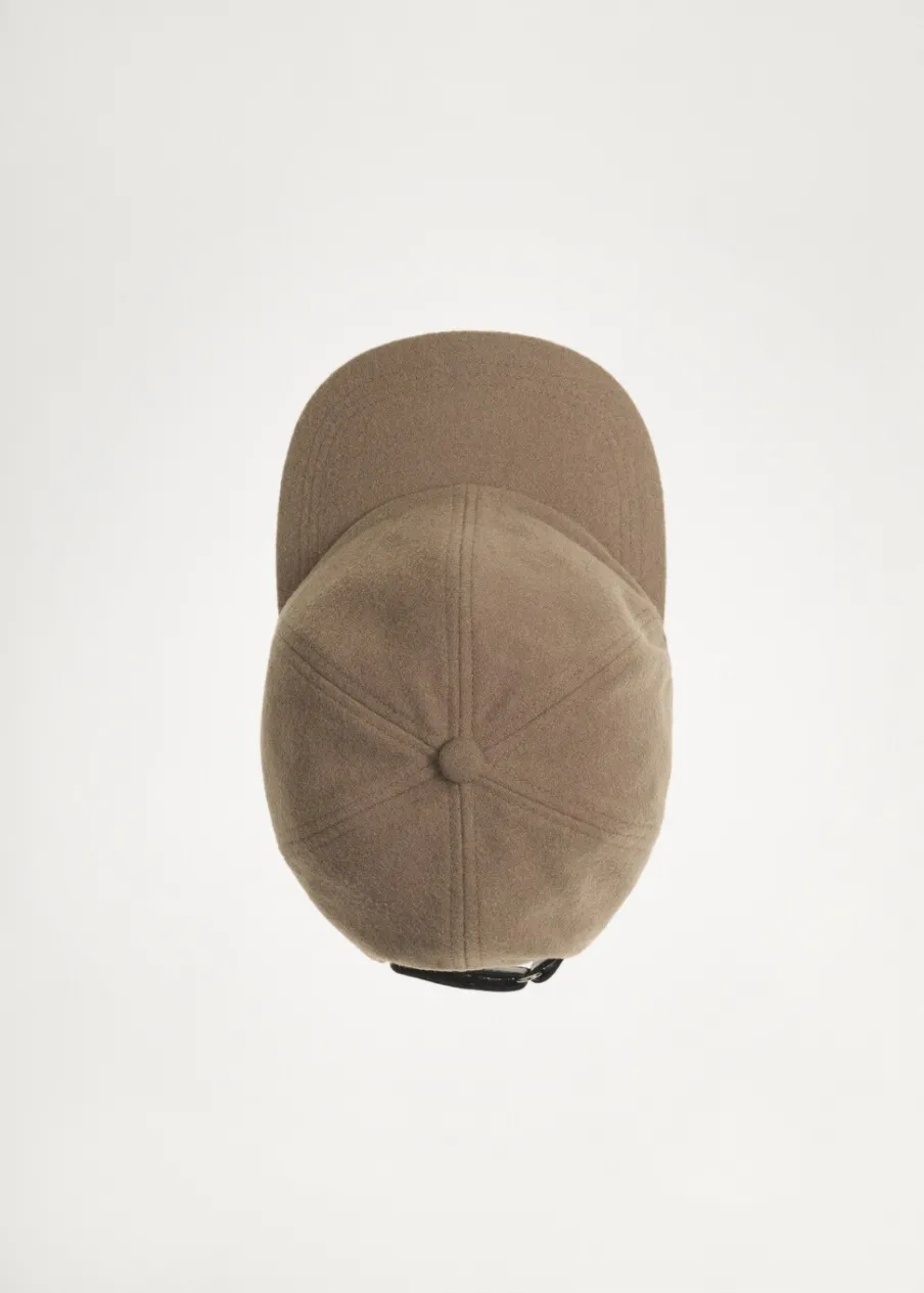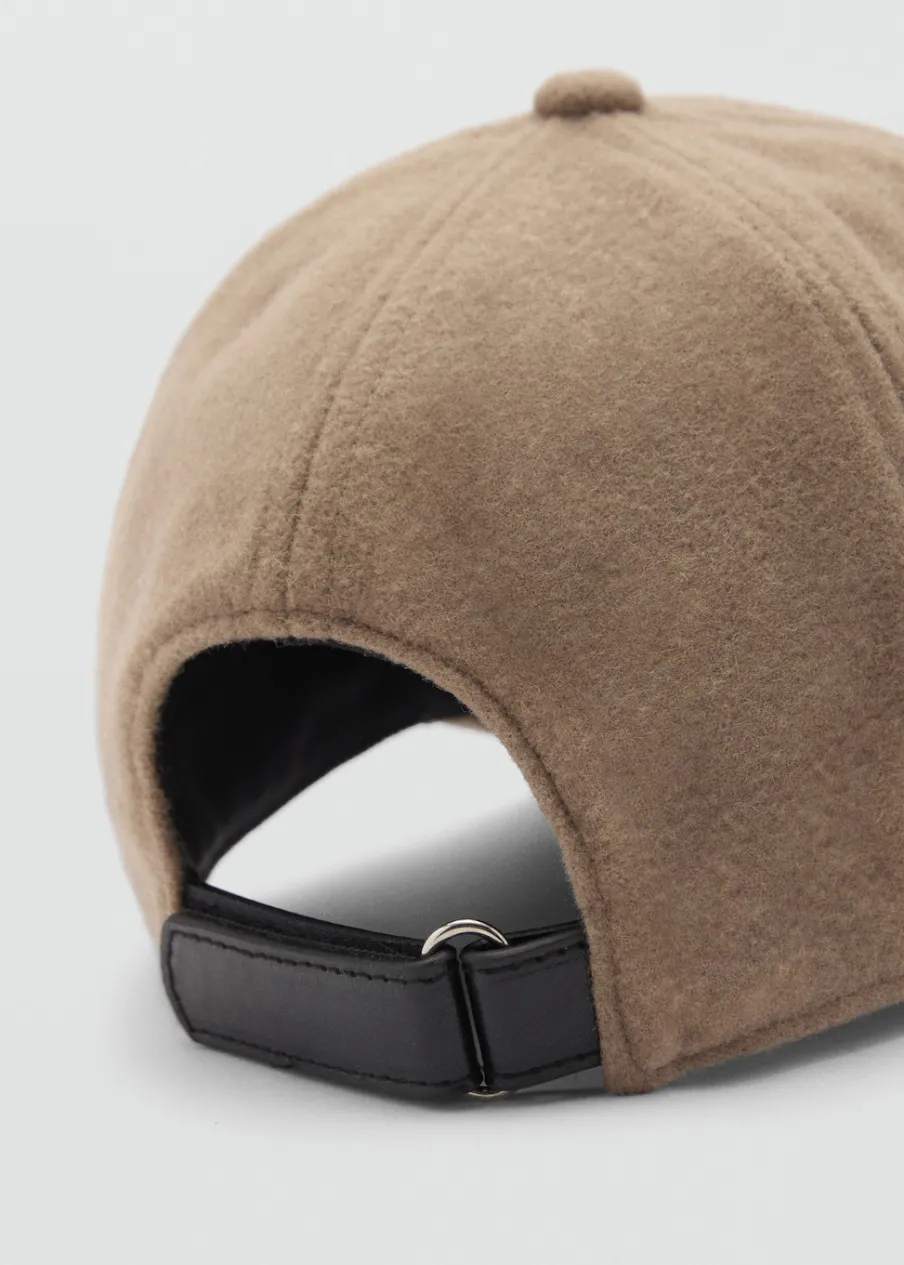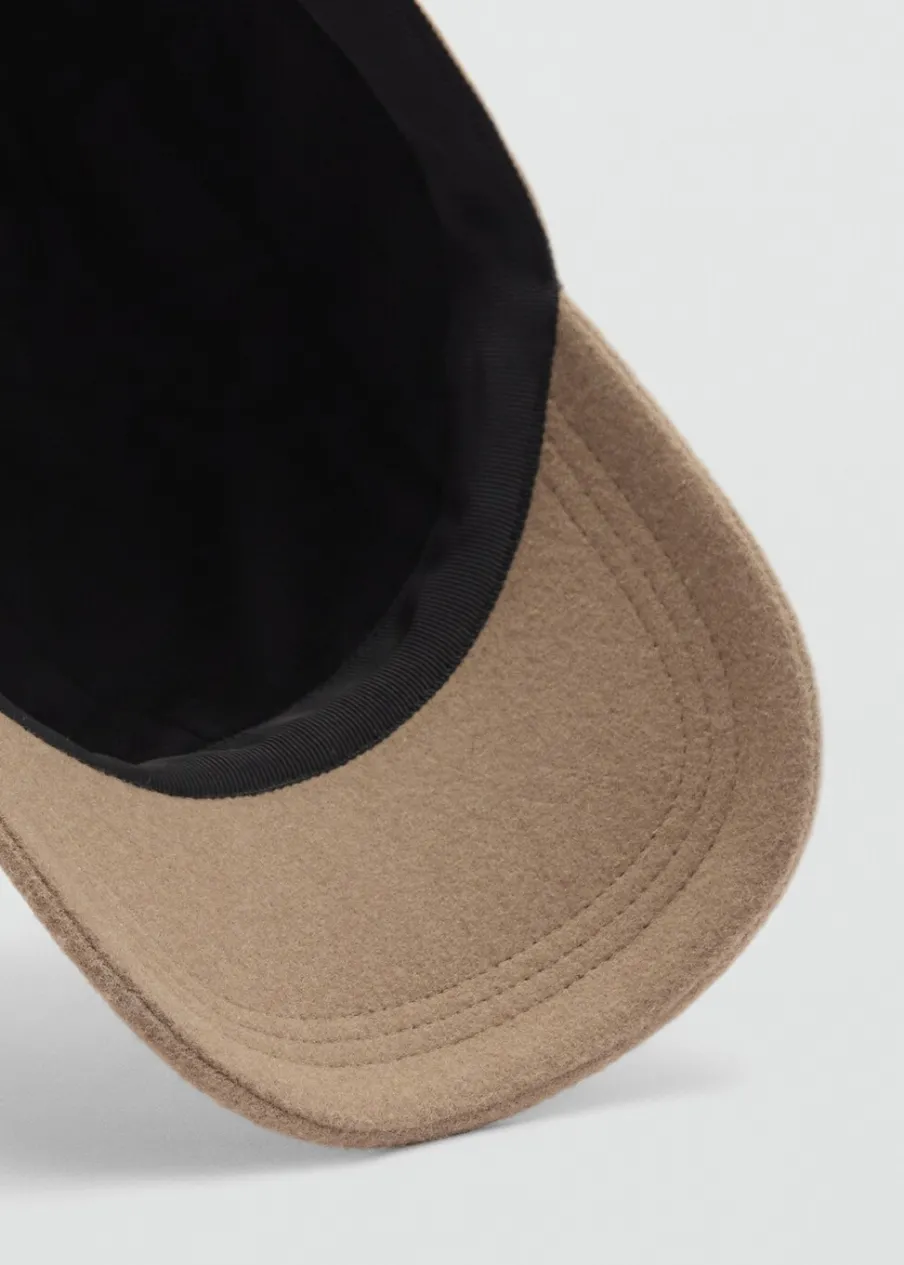 Wełniana tkanina. Z daszkiem. Bawełniana podszewka. Regulacja na rzepy z tyłu.