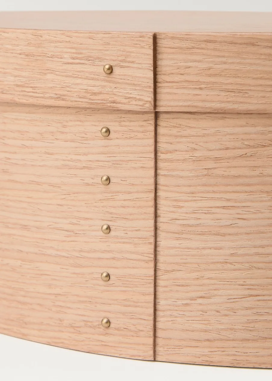 Z pokrywą. Owalny kształt. Łączy rustykalne wzornictwo z elegancką teksturą. Może służyć jako szkatułka na biżuterię i inne drobiazgi albo jako przedmiot dekoracyjny. Połączenie elegancji i oryginalnego wzornictwa, pasuje do każdego pomieszczenia. Model dostępny w dwóch rozmiarach.