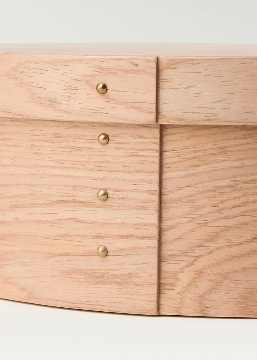 Z pokrywą. Owalny kształt. Łączy rustykalne wzornictwo z elegancką teksturą. Może służyć jako szkatułka na biżuterię i inne drobiazgi albo jako przedmiot dekoracyjny. Połączenie elegancji i oryginalnego wzornictwa, pasuje do każdego pomieszczenia. Model dostępny w dwóch rozmiarach.