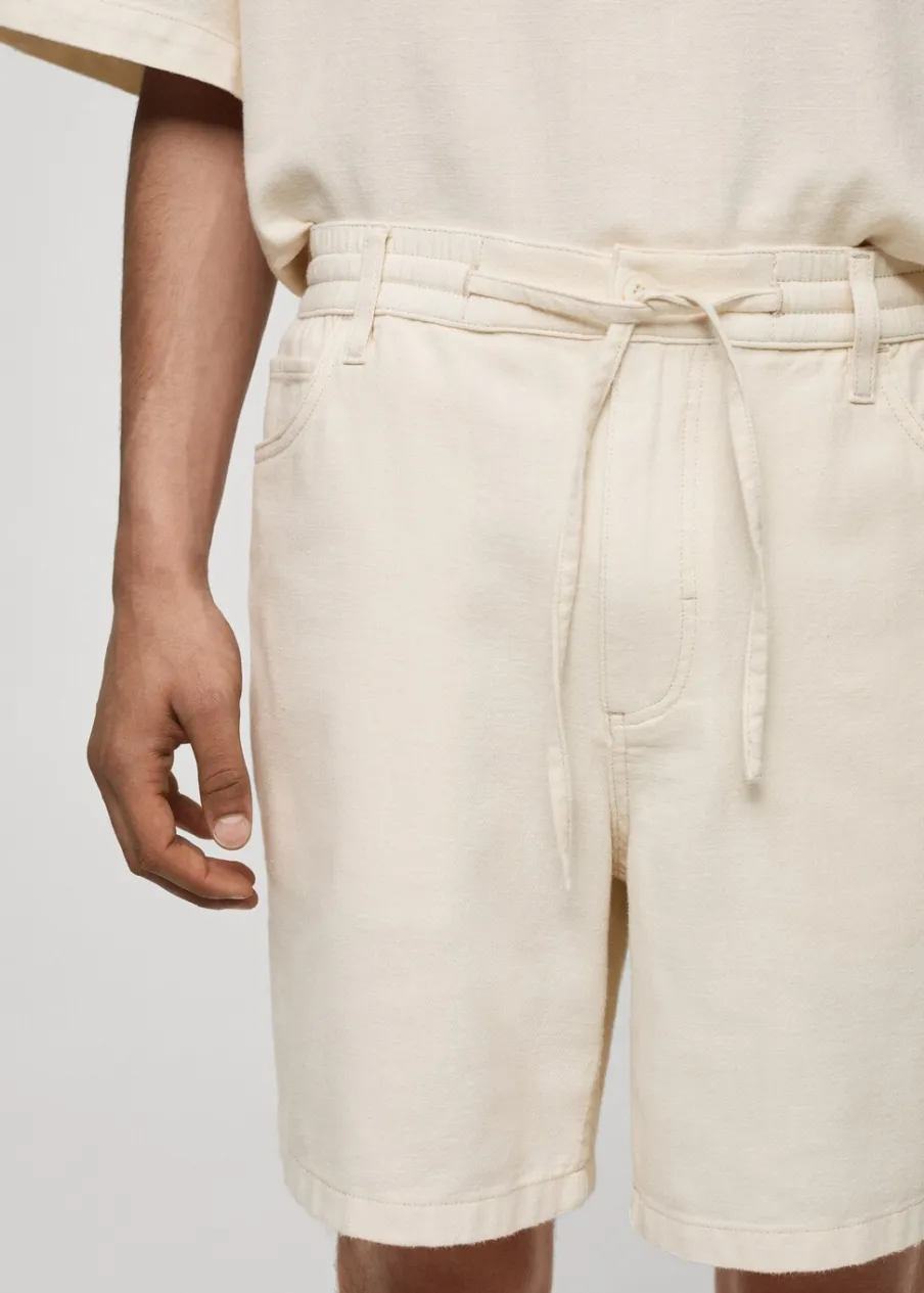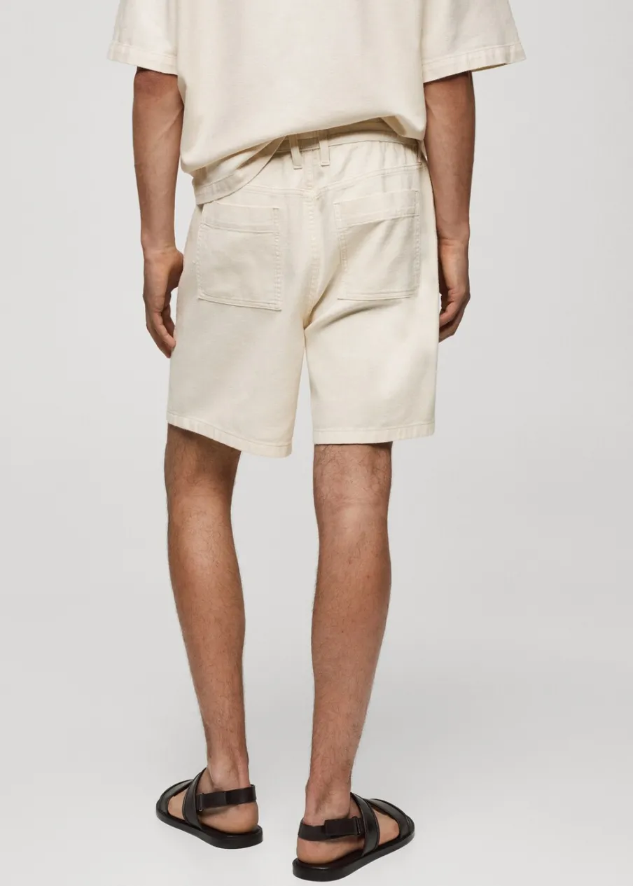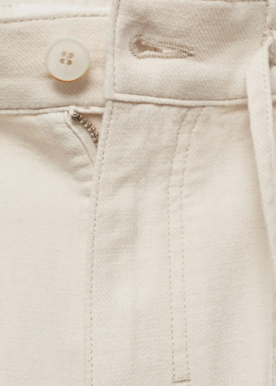 Dostępny zestaw total look. Tkanina bawełniana. Szlufki na pasek. Zapięcie na suwak i guzik. Elastyczny pas z regulowanym sznurkiem. Dwie kieszenie z przodu. Dwie kieszenie nakładane z tyłu. Prosty dół. Model ma 185 cm wzrostu i nosi rozmiar 42.