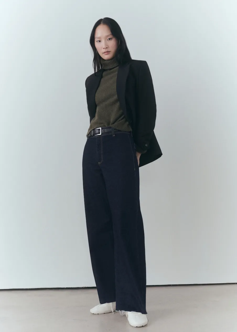 OpisTkanina bawełniana w dżinsowym stylu. Rinse wash. Elastyczna tkanina. Fason culotte. Podwyższony stan. Szlufki. K…