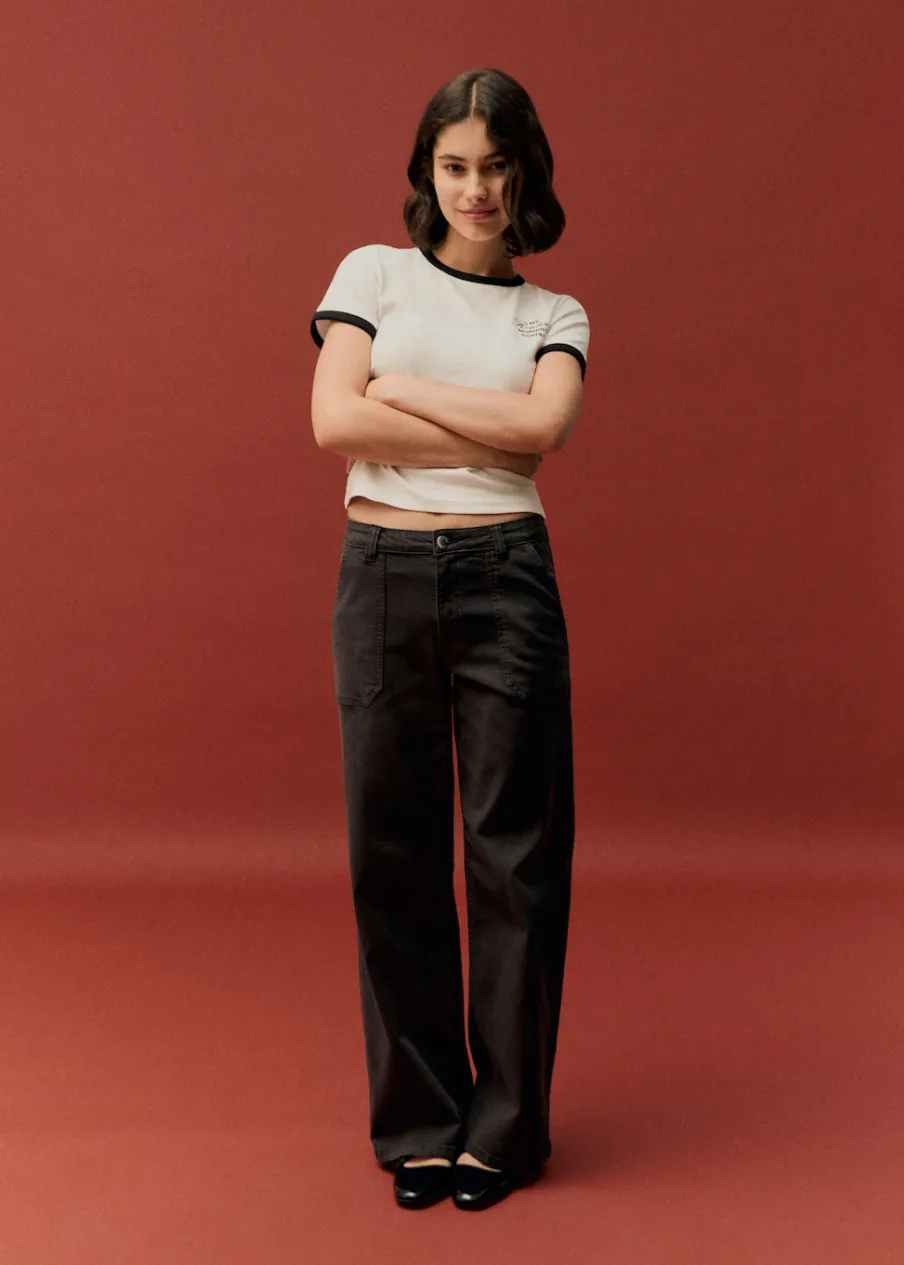 Tkanina bawełniana w dżinsowym stylu. Fason culotte. Model długi. Model prosty. Średni stan. Dwie kieszenie. Zapięcie na suwak i guzik. Modelka ma 172 cm wzrostu i nosi rozmiar M. Powrót do szkoły.
