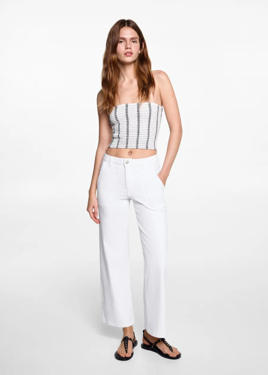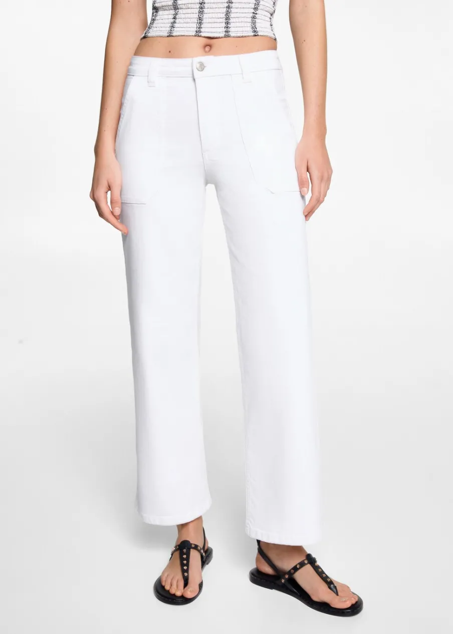 Tkanina bawełniana w dżinsowym stylu. Model prosty. Deseń crop. Fason culotte. Cztery kieszenie. Średni stan. Comfy-fit. Zapięcie na suwak i guzik.