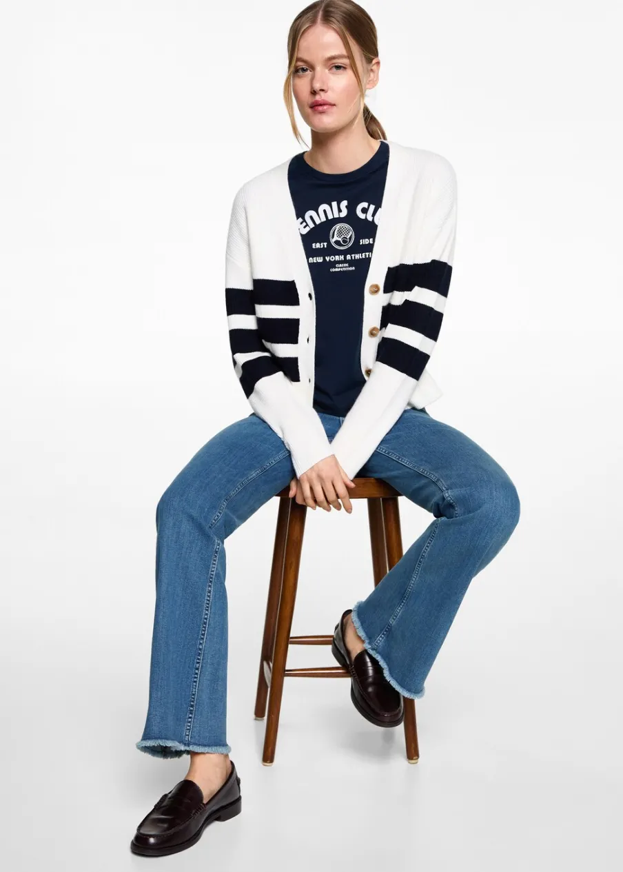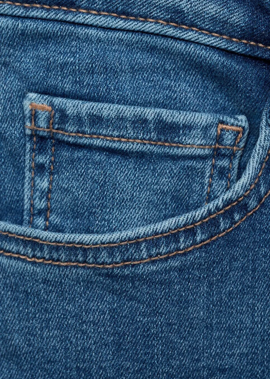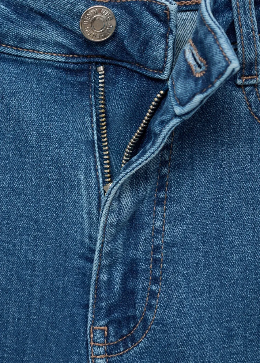 OpisTkanina bawełniana w dżinsowym stylu. Rozszerzany model. Styl flare. Zapięcie na guzik i zamek. Postrzępione nog…