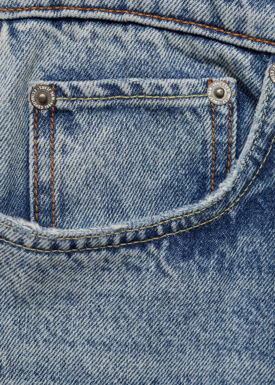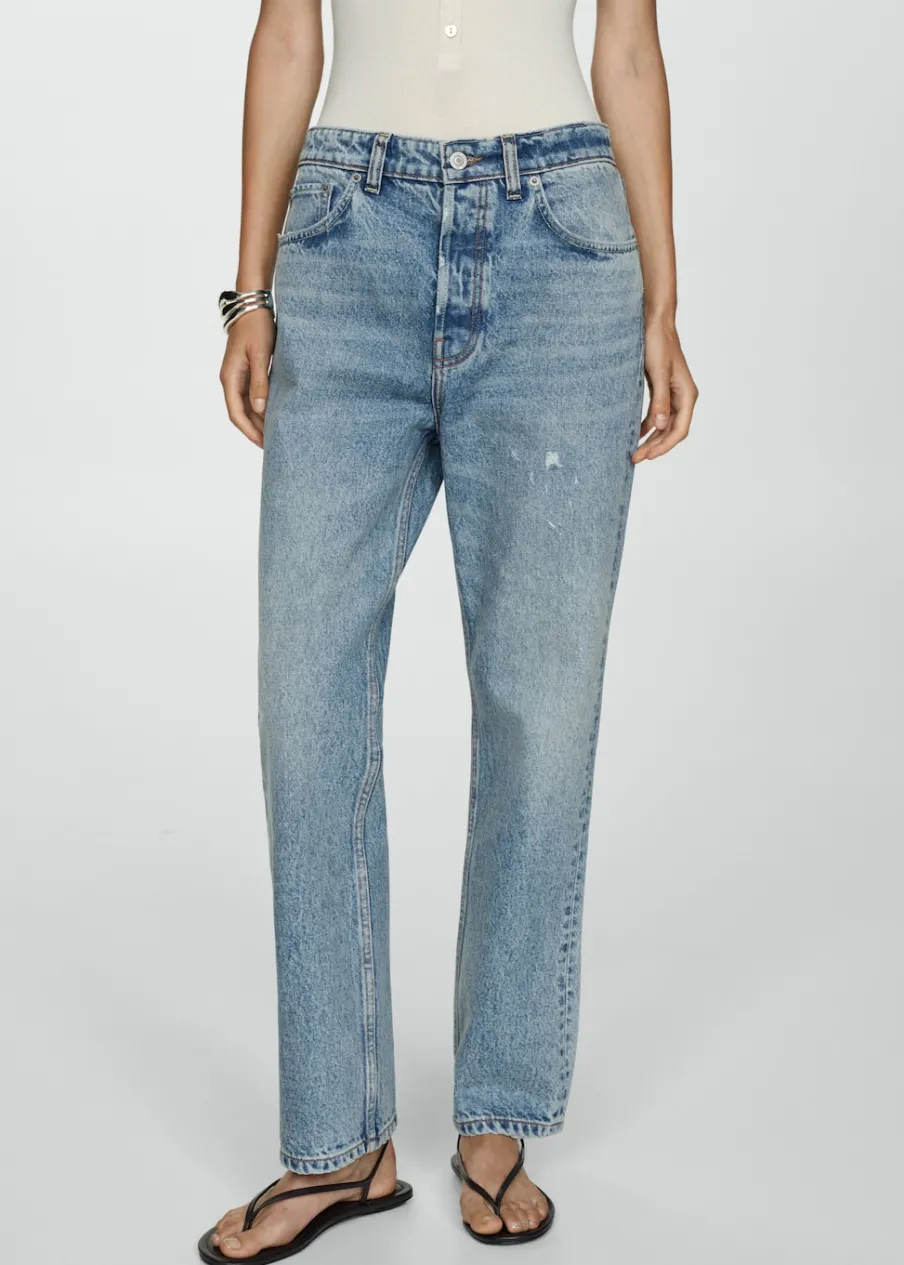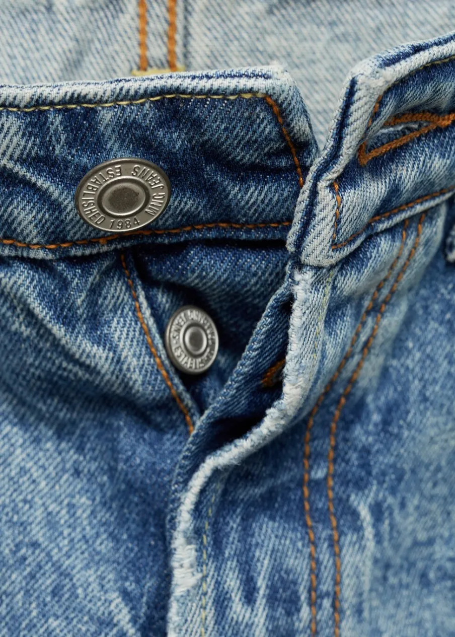 Tkanina bawełniana w dżinsowym stylu. Styl boyfriend. Krój loose. Model długi. Pięć kieszeni. Szlufki. Zapięcie na zamek i guzik z przodu. Długość wewnętrzna 75,5 cm.