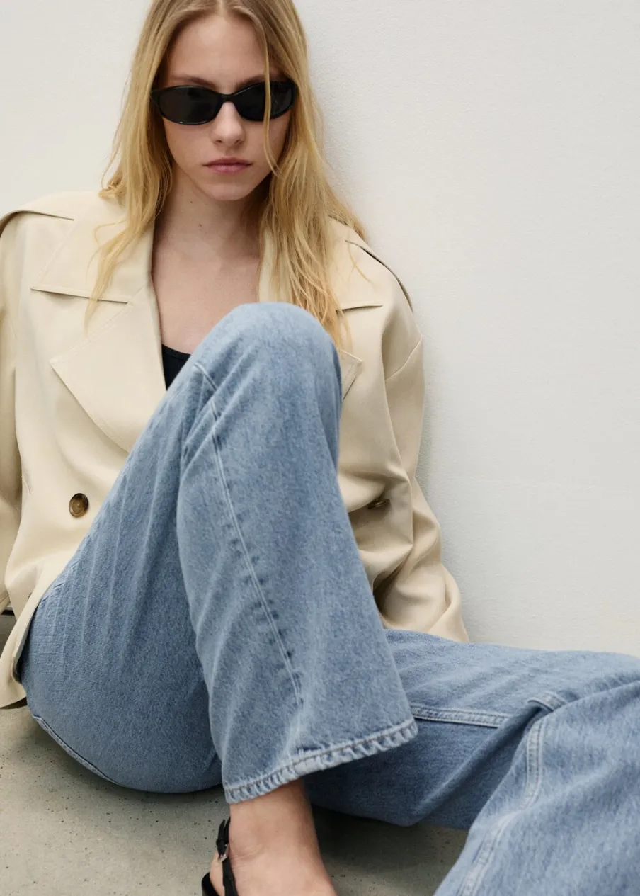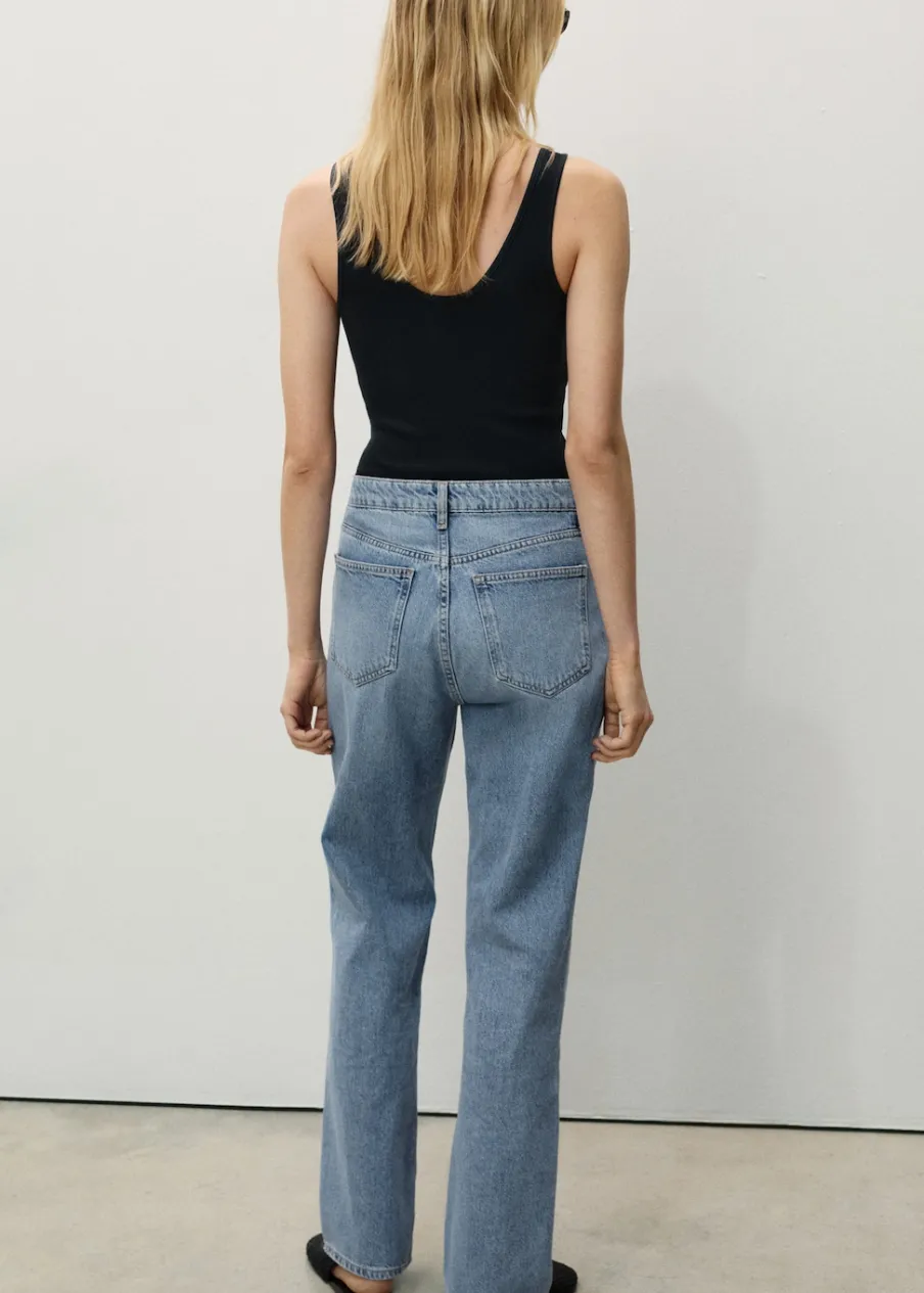 Tkanina bawełniana w dżinsowym stylu. Model standardowy. Średni stan. Model prosty. Pięć kieszeni. Zapięcie na suwak i guzik. Szlufki.