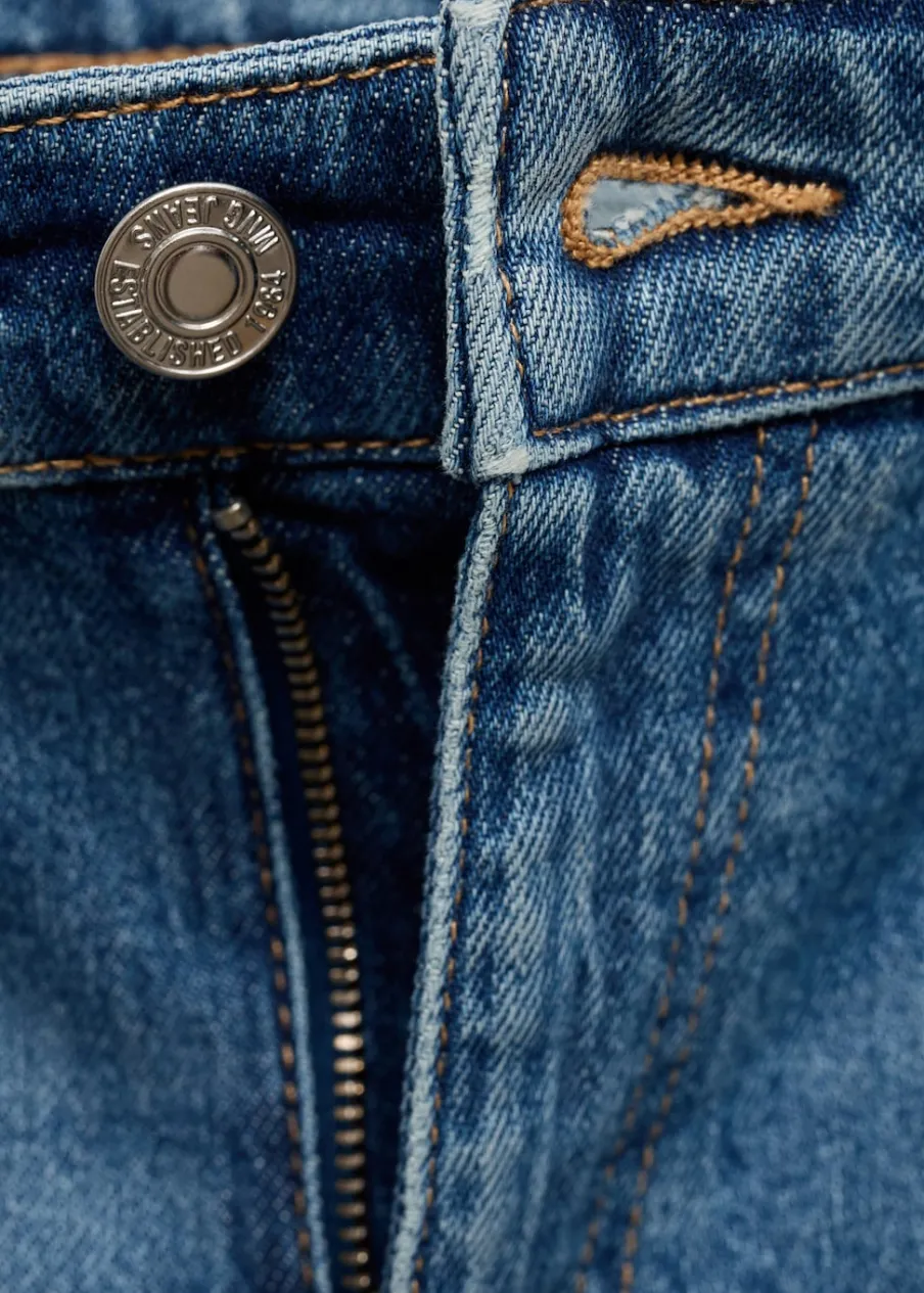 OpisTkanina bawełniana w dżinsowym stylu. Elastyczna tkanina. Mom-fit. Podwyższony stan. Szlufki. Pięć kieszeni. Za…