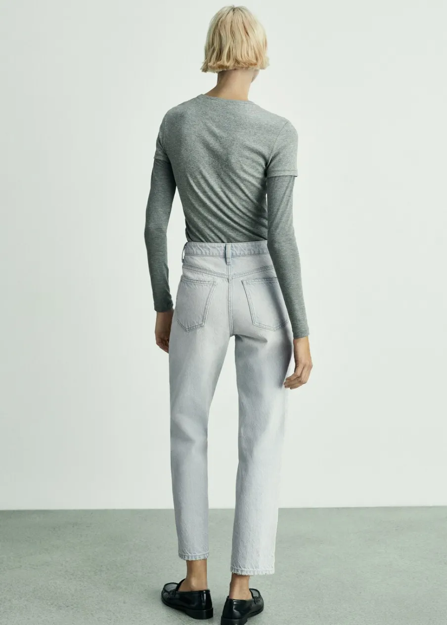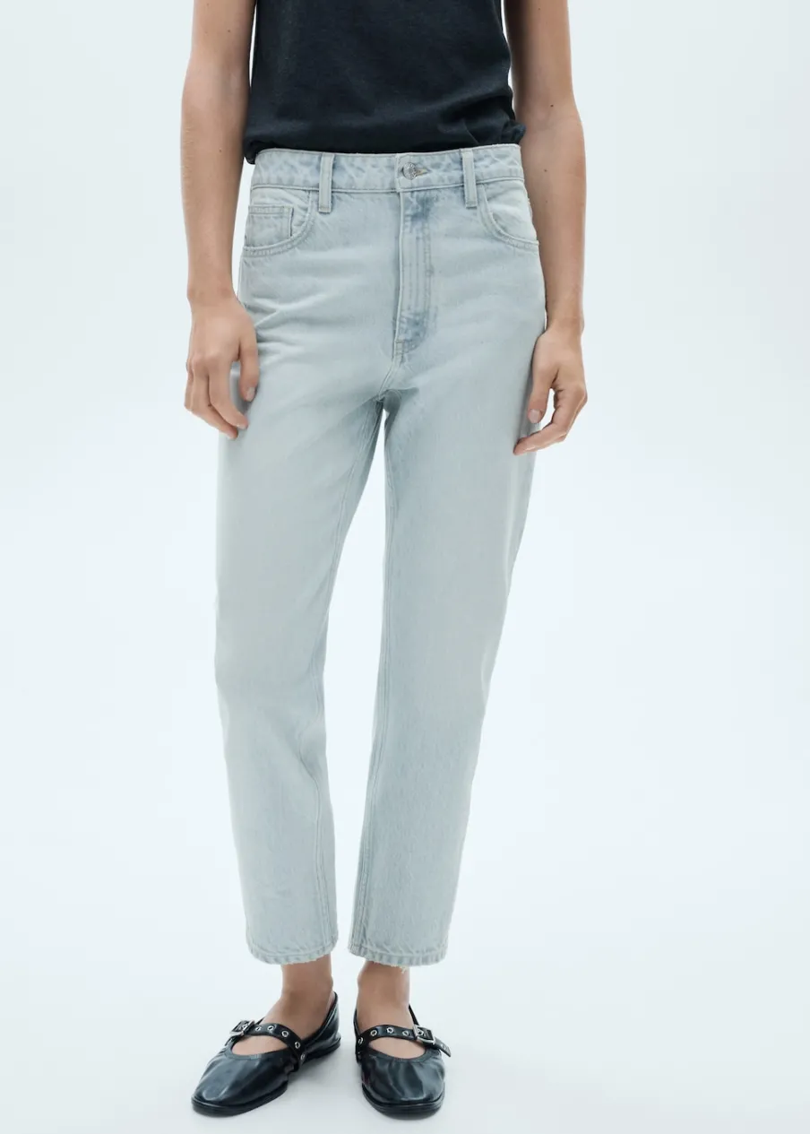 OpisTkanina bawełniana w dżinsowym stylu. Elastyczna tkanina. Mom-fit. Podwyższony stan. Szlufki. Pięć kieszeni. Za…