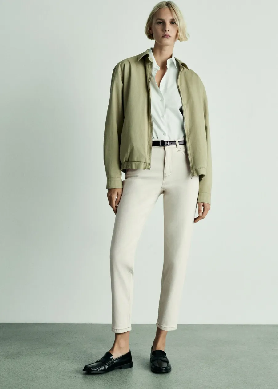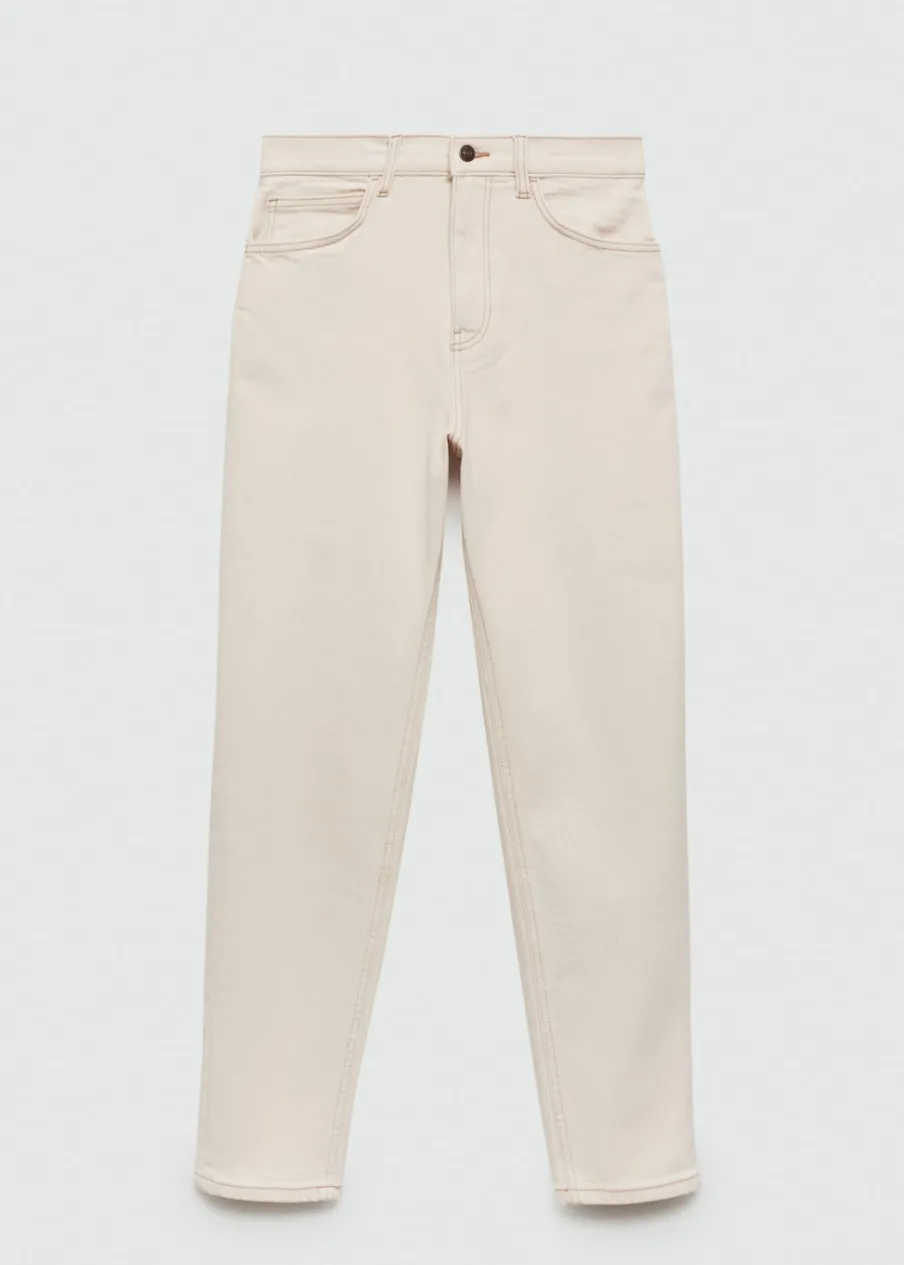 Tkanina bawełniana w dżinsowym stylu. Elastyczna tkanina. Mom-fit. Podwyższony stan. Szlufki. Pięć kieszeni. Zapięcie na suwak i guzik. Dostępne w Plus Size. Długość wewnętrzna 70 cm. Modelka ma 179 cm wzrostu i nosi rozmiar S/36.