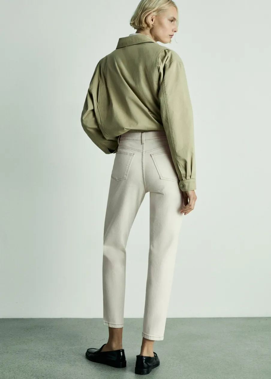 OpisTkanina bawełniana w dżinsowym stylu. Elastyczna tkanina. Mom-fit. Podwyższony stan. Szlufki. Pięć kieszeni. Za…