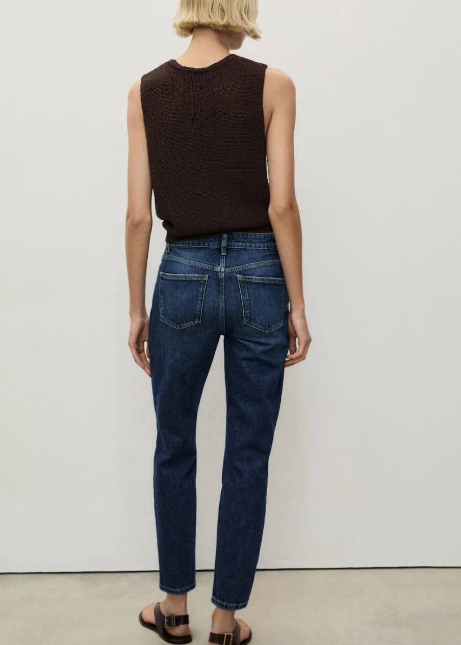 OpisTkanina bawełniana w dżinsowym stylu. Elastyczna tkanina. Mom-fit. Podwyższony stan. Szlufki. Pięć kieszeni. Za…