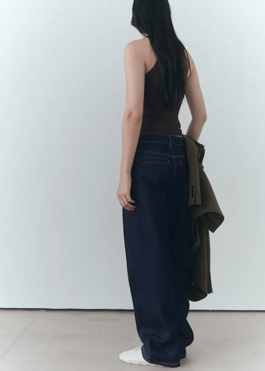 Tkanina bawełniana w dżinsowym stylu. Model prosty. Model długi. Rinse wash. Średni stan. Ozdobne szwy. Pięć kieszeni. Zapięcie na suwak i guzik. Total look.