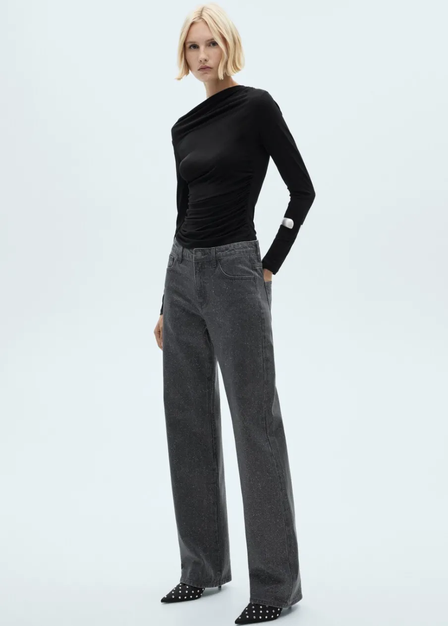 Tkanina bawełniana w dżinsowym stylu. Błyszczące wykończenie. Model prosty. Średni stan. Szlufki. Pięć kieszeni. Zapięcie na suwak i guzik. Modelka ma 178 cm wzrostu i nosi rozmiar S/36. Kolekcja wizytowa.