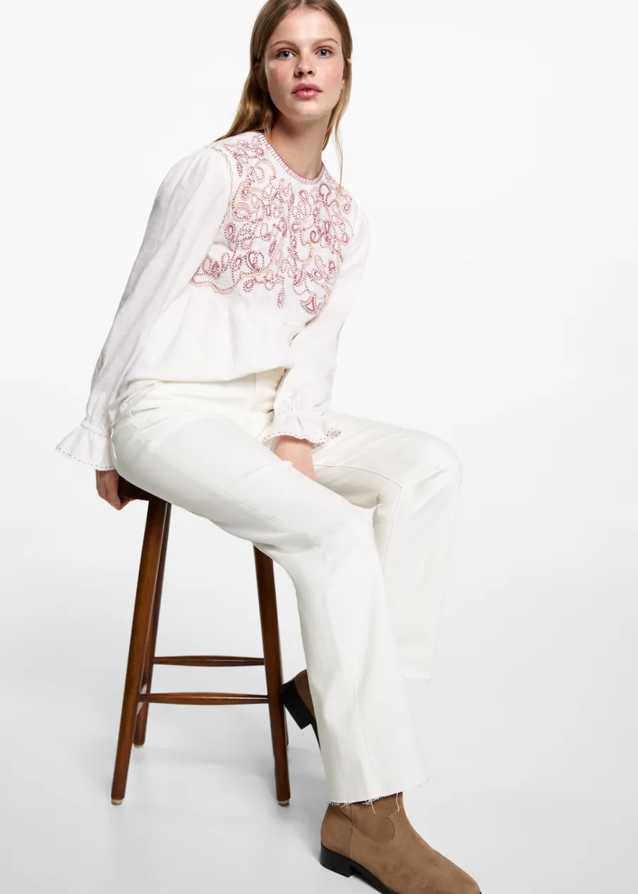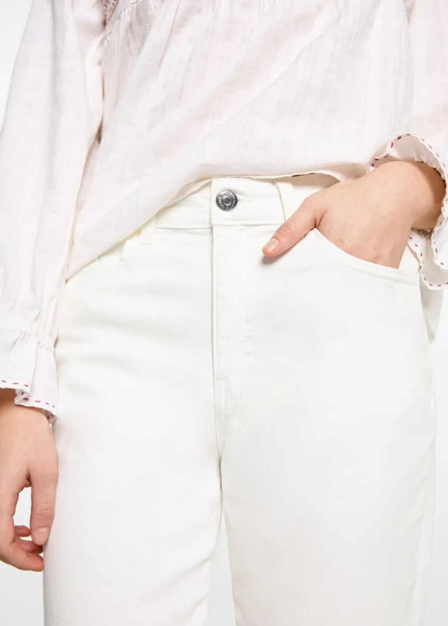 Tkanina bawełniana w dżinsowym stylu. Model długi. Model prosty. Krój regular. Średni stan. Pięć kieszeni. Szlufki. Zapięcie na suwak i guzik. Modelka ma 172 cm wzrostu i nosi rozmiar M.