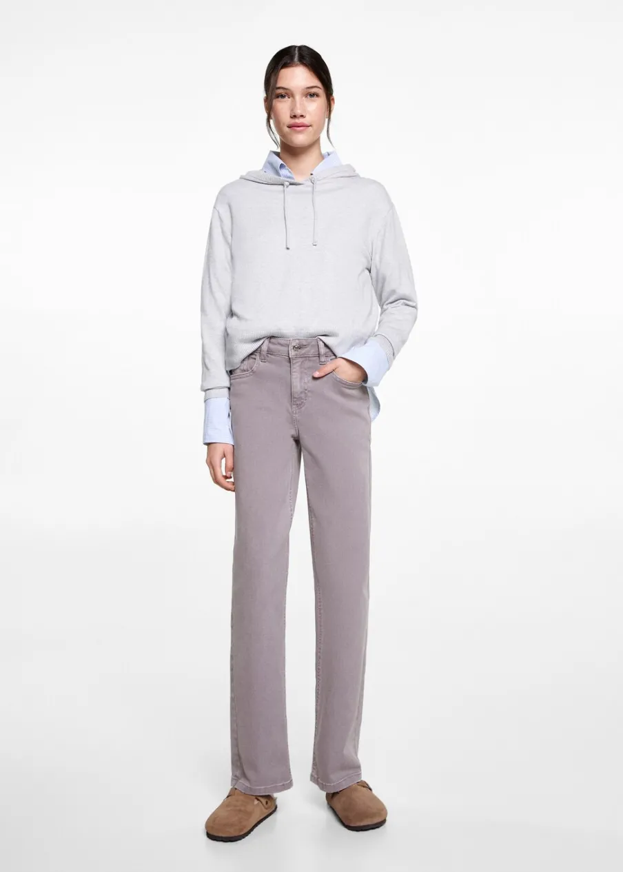 Tkanina bawełniana w dżinsowym stylu. Elastyczna tkanina. Model prosty. Model długi. Średni stan. Pięć kieszeni. Szlufki. Zapięcie na suwak i guzik. Modelka ma 172 cm wzrostu i nosi rozmiar M.