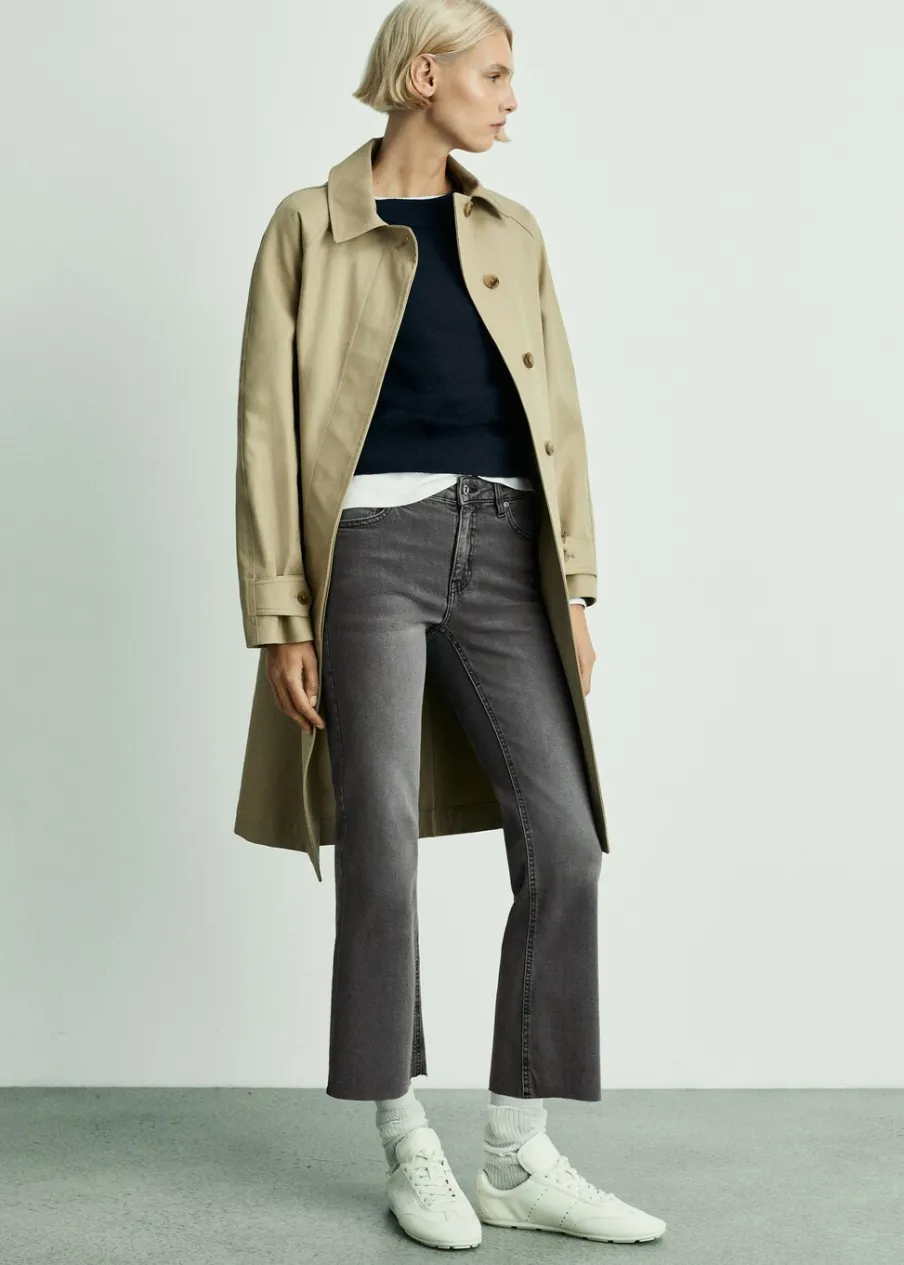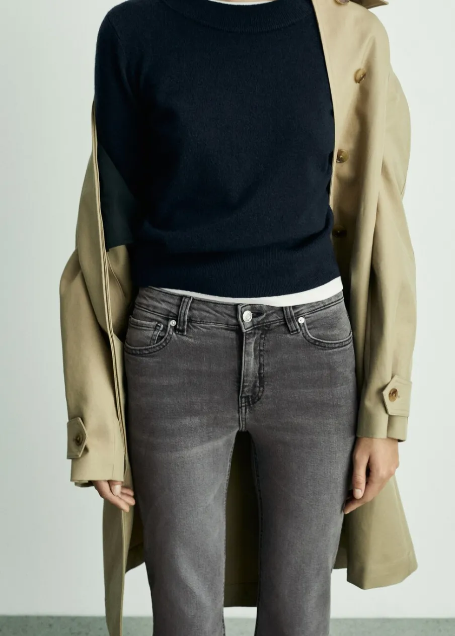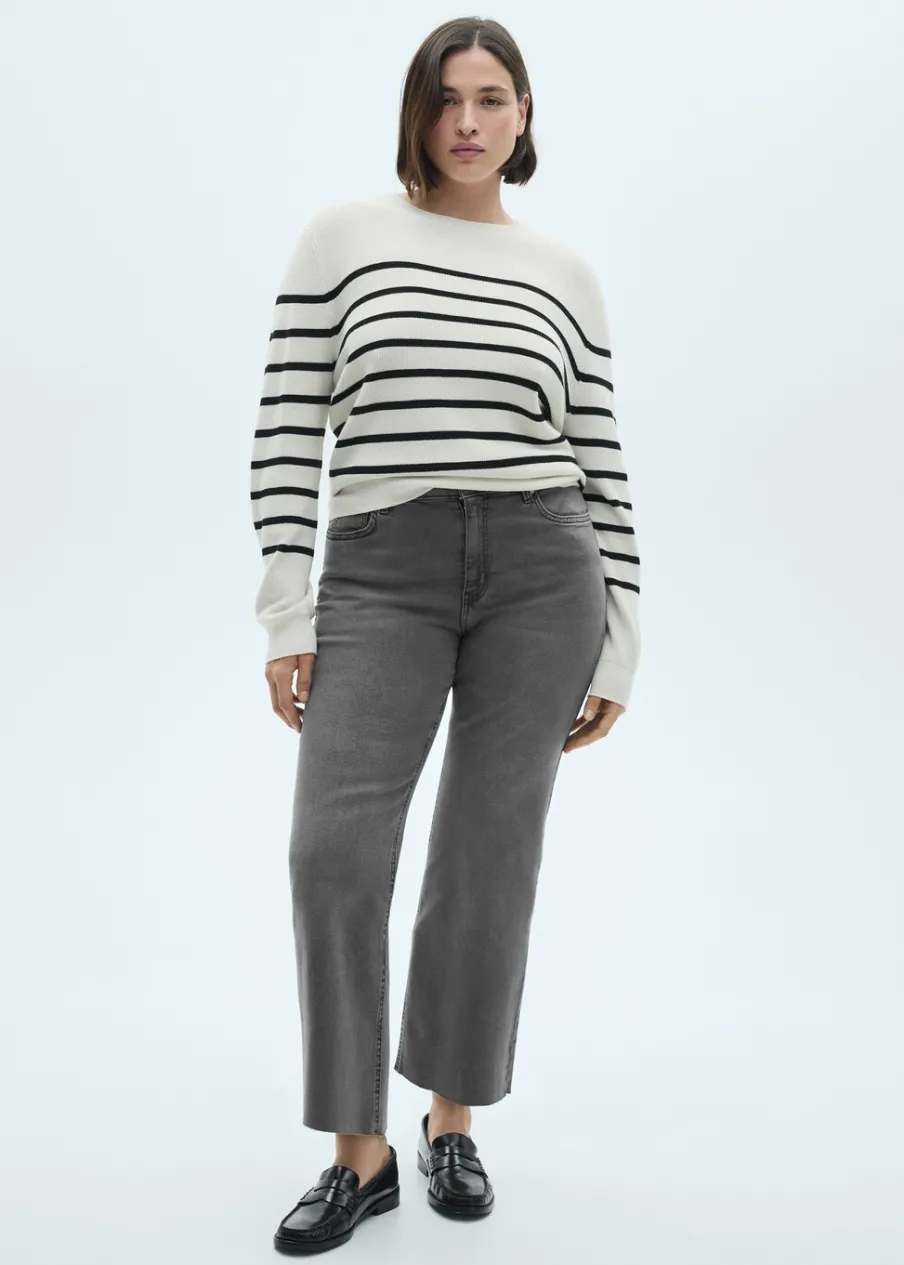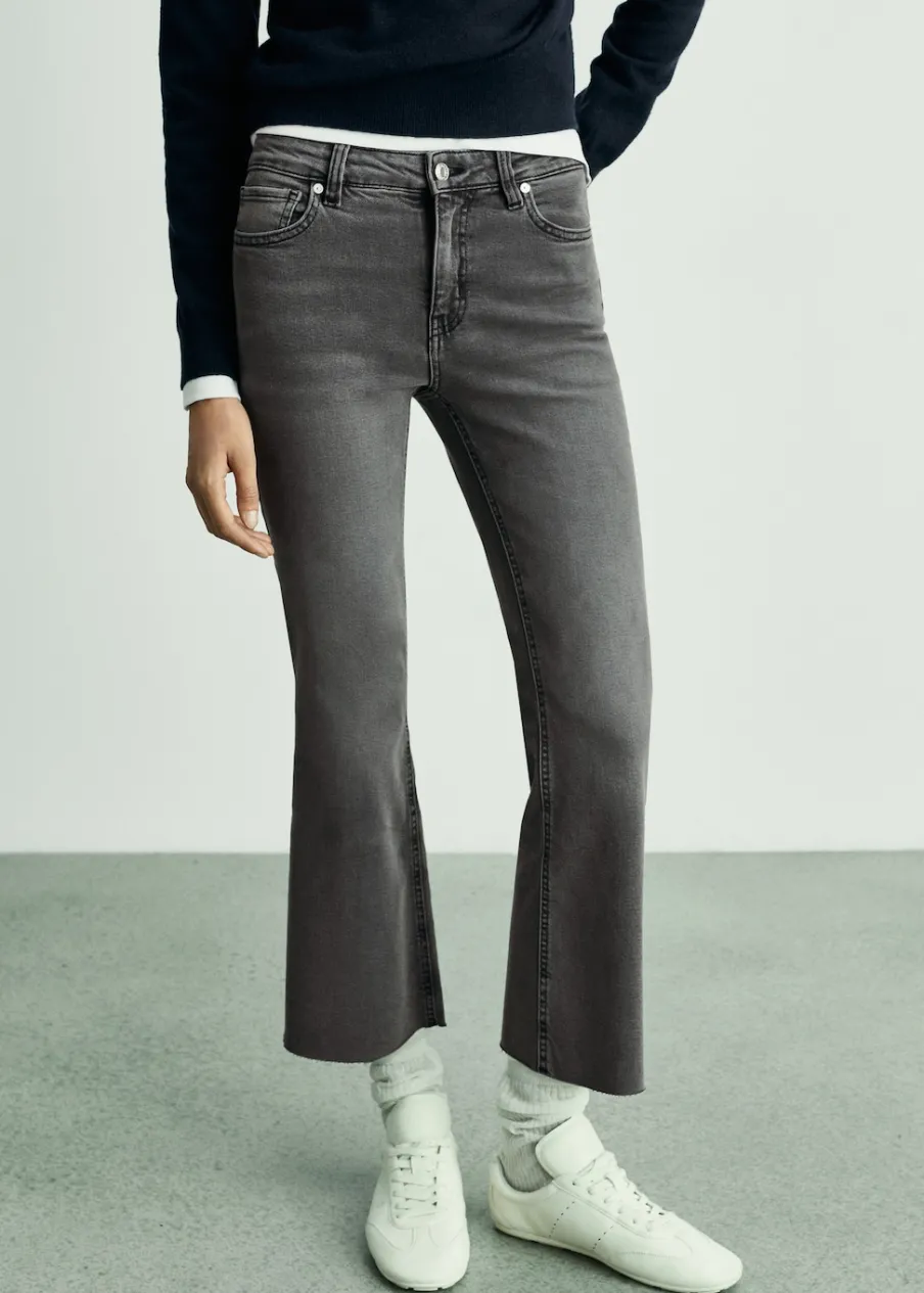 Deseń crop. Średni stan. Dostępne w Plus Size. Pięć kieszeni. Szlufki. Zapięcie na zamek i guzik z przodu. Długość wewnętrzna 65 cm. Tkanina bawełniana w dżinsowym stylu. Typu dzwony. Styl flare. Modelka ma 179 cm wzrostu i nosi rozmiar S/36.