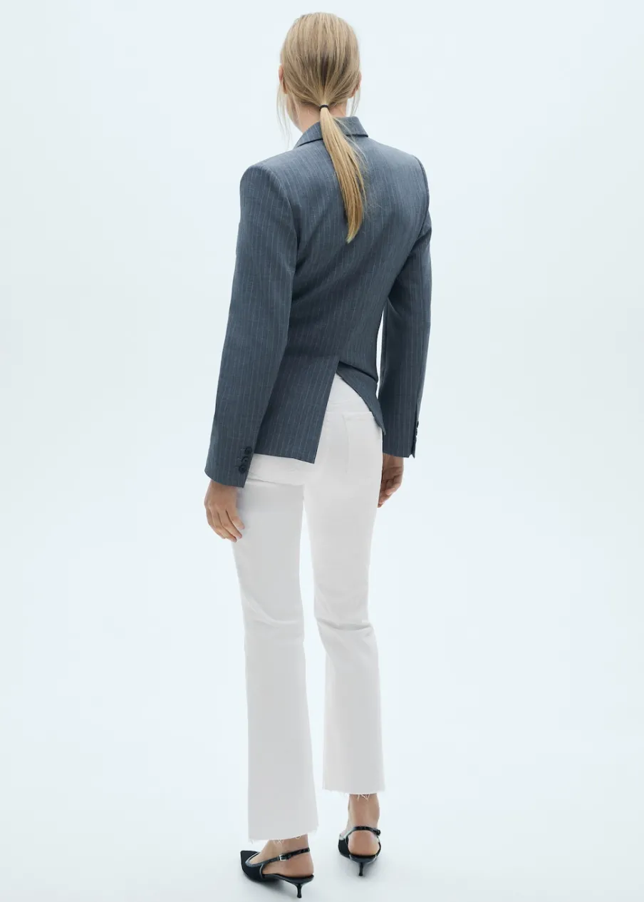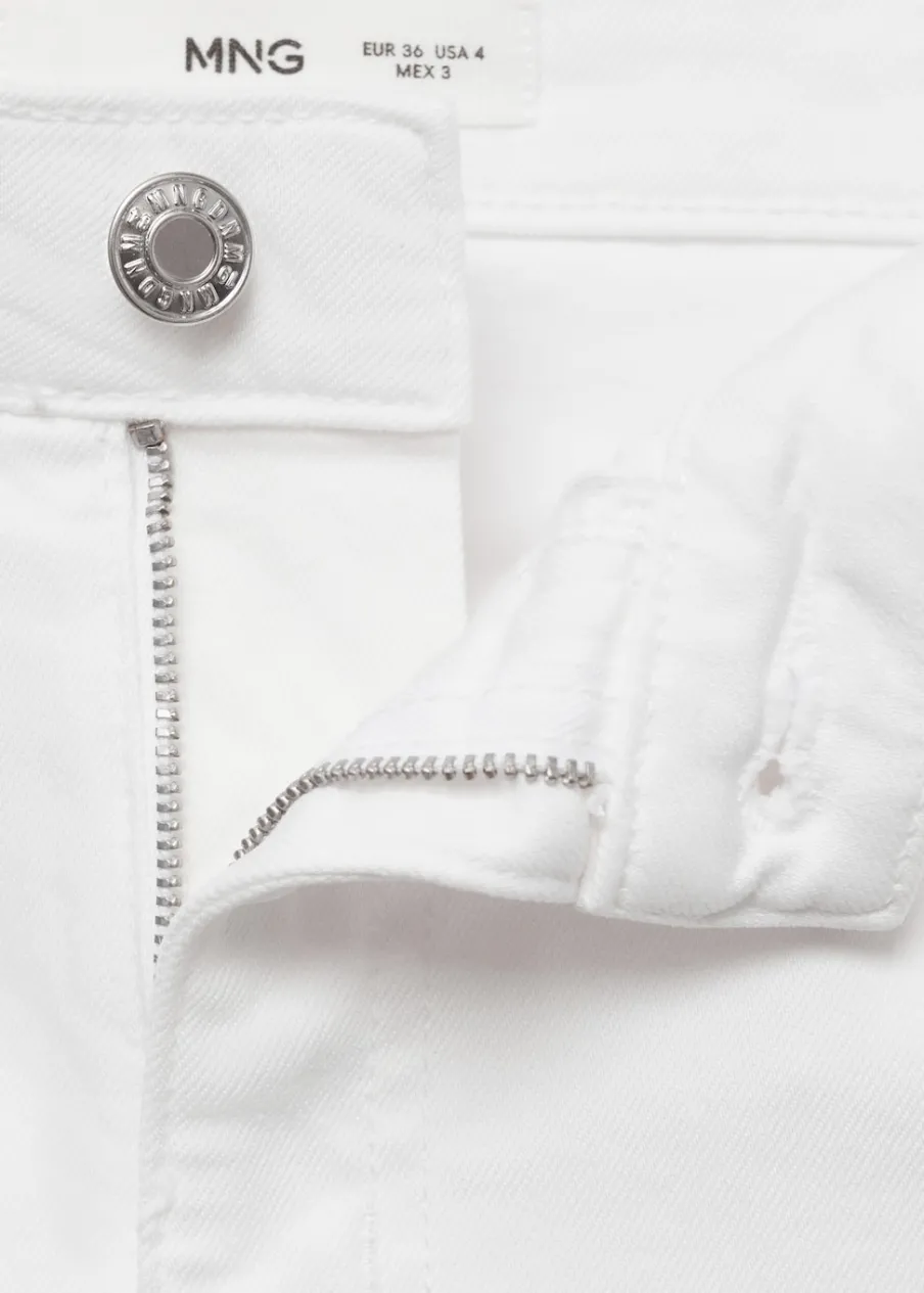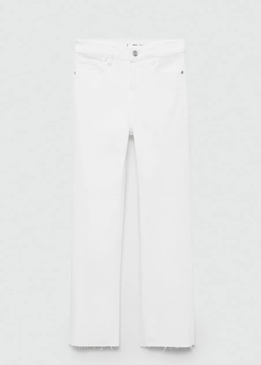 Tkanina bawełniana w dżinsowym stylu. Tkanina mieszana z bawełną z recyklingu. Elastyczna tkanina. Typu dzwony. Styl flare. Deseń crop. Podwyższony stan. Szlufki. Pięć kieszeni. Zapięcie na suwak i guzik. Postrzępione nogawki. Dostępne w Plus Size. Modelka ma 178 cm wzrostu i nosi rozmiar S/36. Długość wewnętrzna 65 cm.