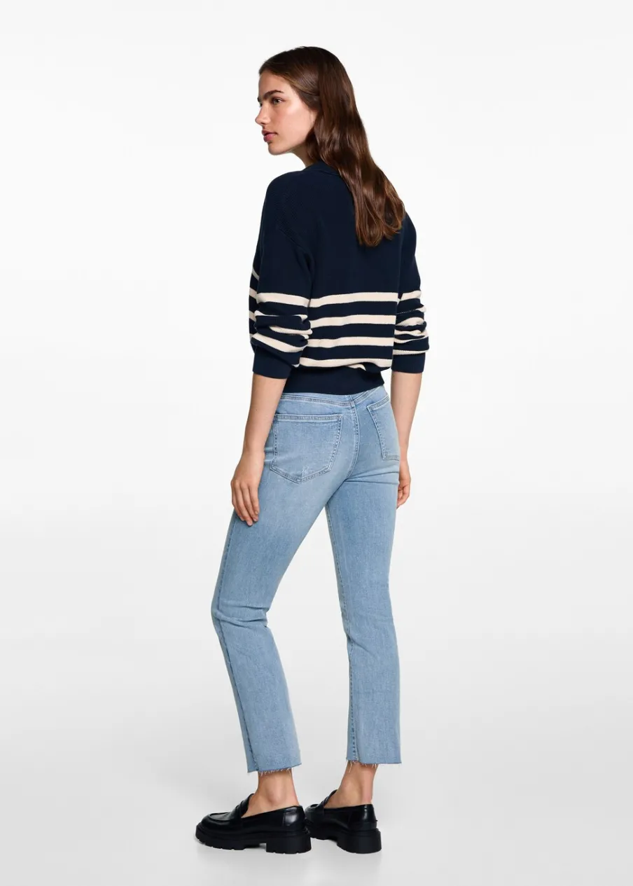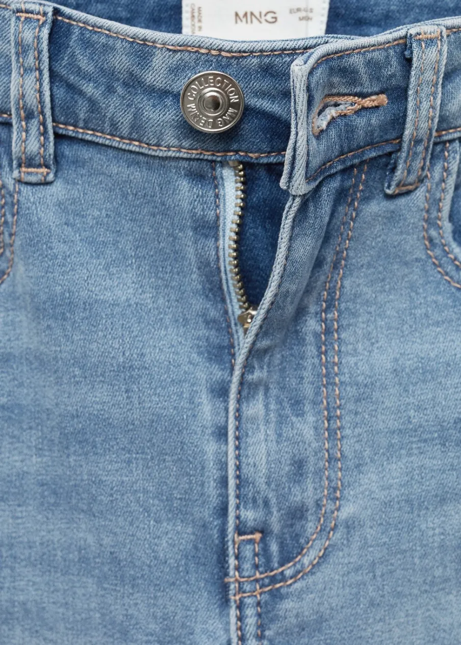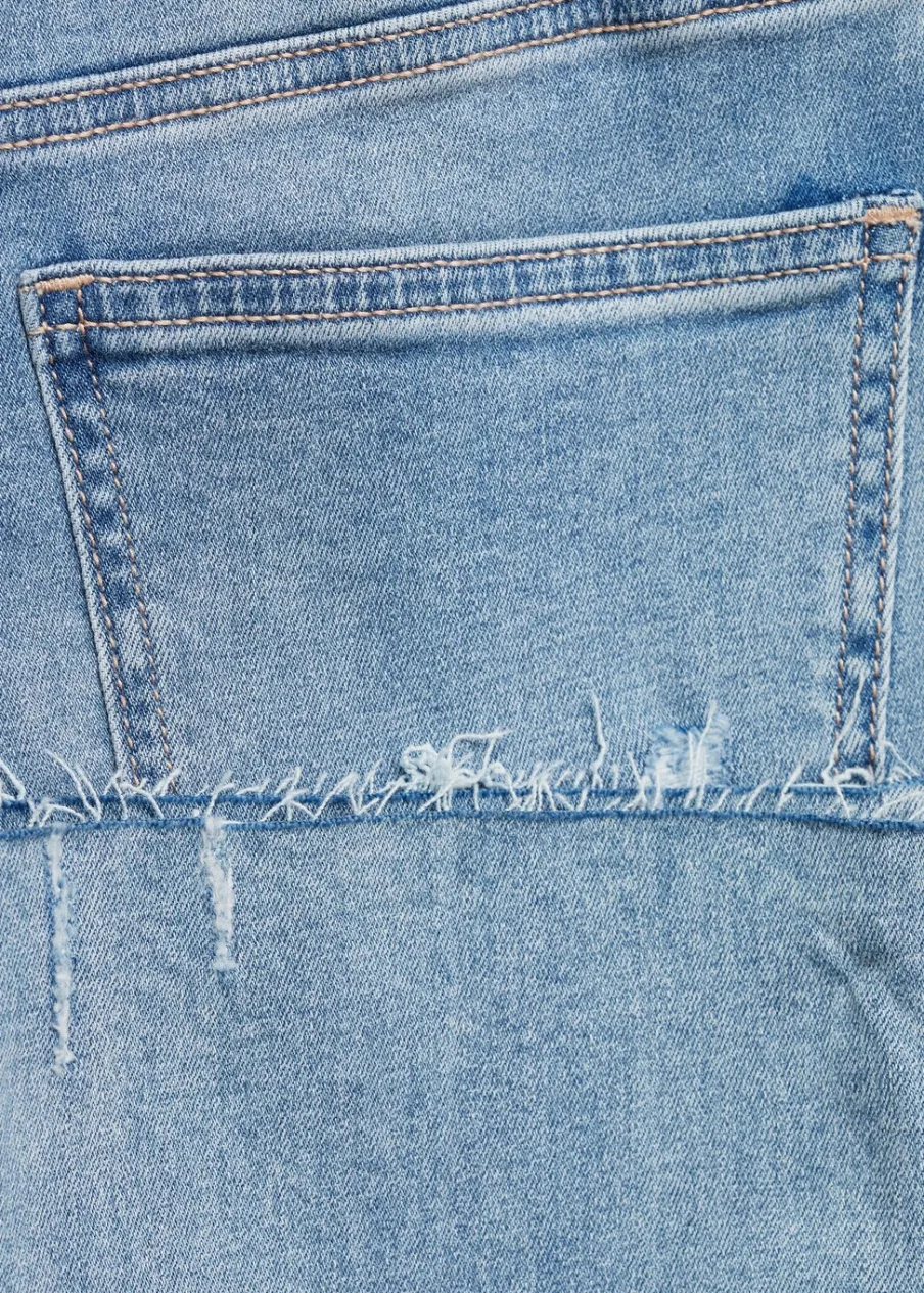 OpisTkanina bawełniana w dżinsowym stylu. Model prosty. Slim-fit. Średni stan. Postrzępione nogawki. Pięć kieszeni…