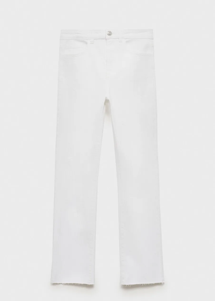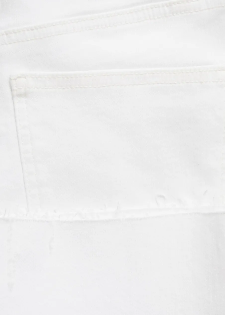 Tkanina bawełniana w dżinsowym stylu. Model prosty. Slim-fit. Średni stan. Postrzępione nogawki. Pięć kieszeni. Zapięcie na suwak i guzik. Modelka ma 172 cm wzrostu i nosi rozmiar M.